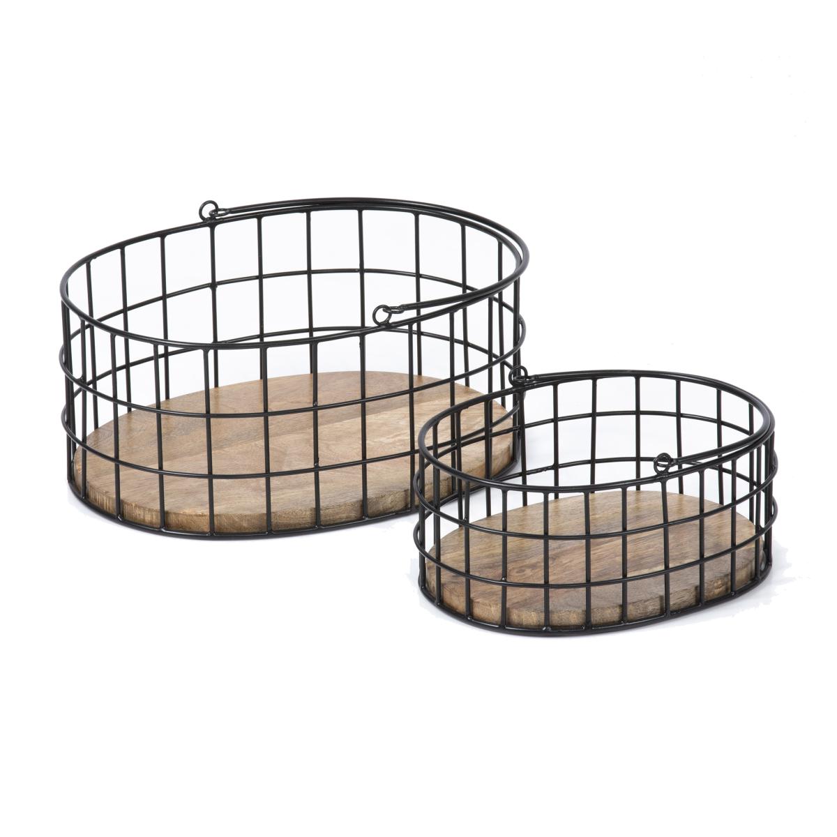 Esselle Aldwych Set of 2 Nested Metal/Wood Baskets - Black