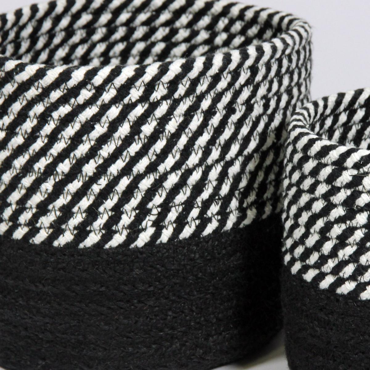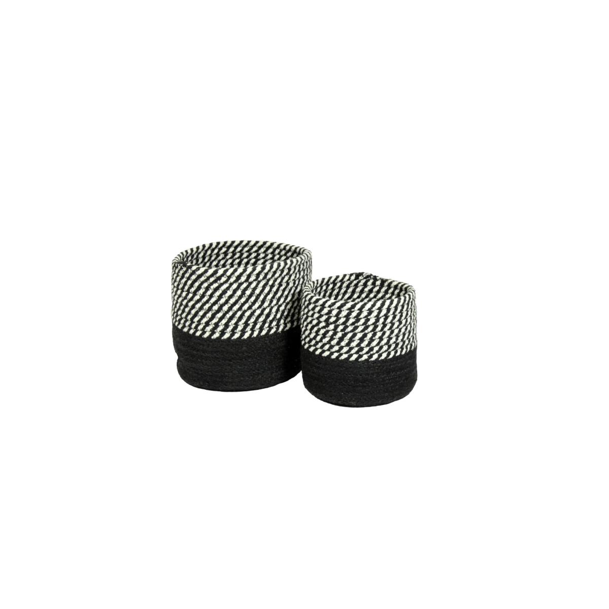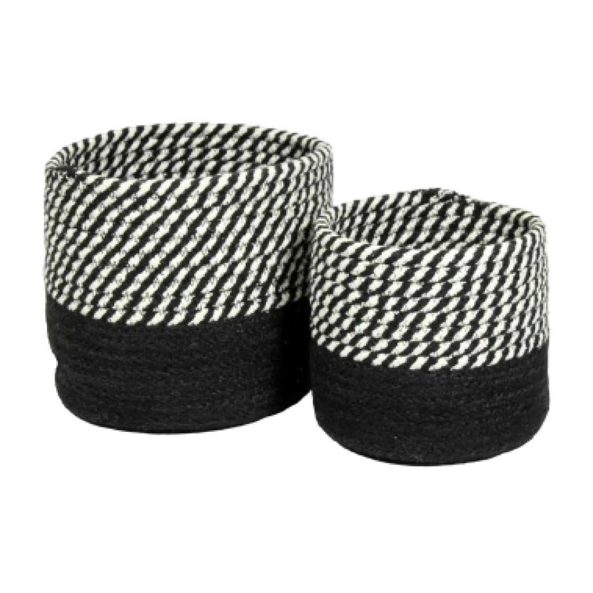 Esselle Barnes Set Of 2 Round Jute/Cotton Baskets - Black Stripe