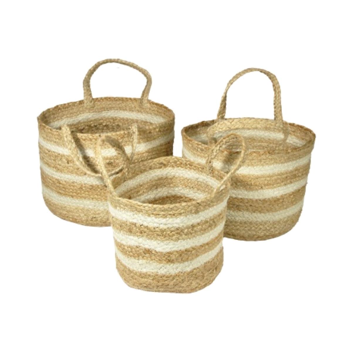Esselle Barnsbury Set Of 3 Jute Baskets - Cream Stripe