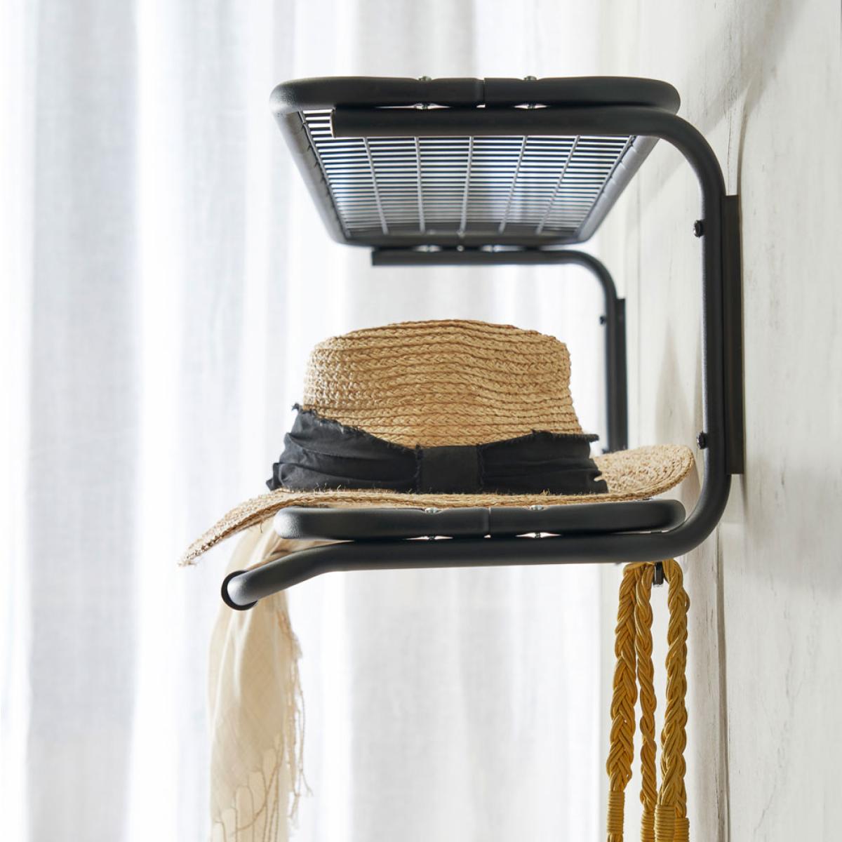 I really like this hat shelf for its sleek and functional design; the black and chrome finish gives it a modern, minimalist aesthetic that works well in both contemporary and industrial interiors. It’s ideal for creating organised entryways or utilising wall space in kitchens and utility rooms. Its two-tiered design provides ample room for hats, gloves, or keys, while the chrome bars are sturdy enough to avoid warping or bending over time. For styling tips, consider grouping accessories like baskets or hanging decorative accents underneath or beside it to keep the area looking tidy yet inviting. This piece is versatile and practical, perfect for those who want a streamlined way to keep their essentials within easy reach without sacrificing style.