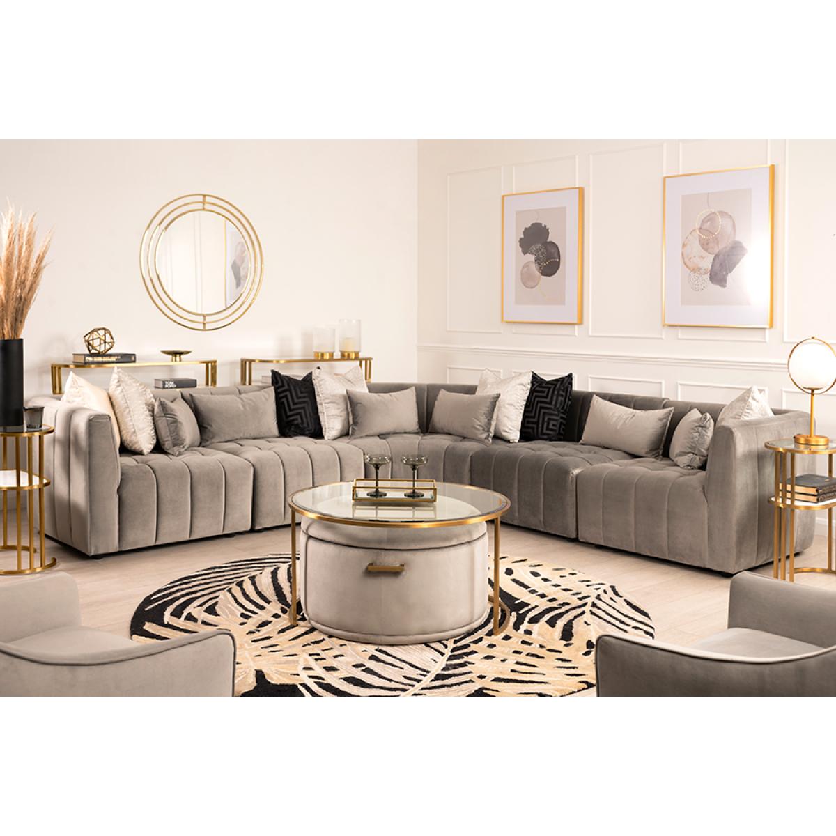 Contemporary design inspired by luxurious 1970’s Californian interiors. Sprung seat and backrest with deep foam and fibre topping. Velvet upholstery fabric. Constructed from modular components that simply and securely connect together, allowing for ease of installation and multiple configurations. Will comfortably seat 6-7 people. In the unlikely event that you are dissatisfied with your sofa let us know (within 7 days) and we will happily collect it and fully refund you , including the return shipping cost.