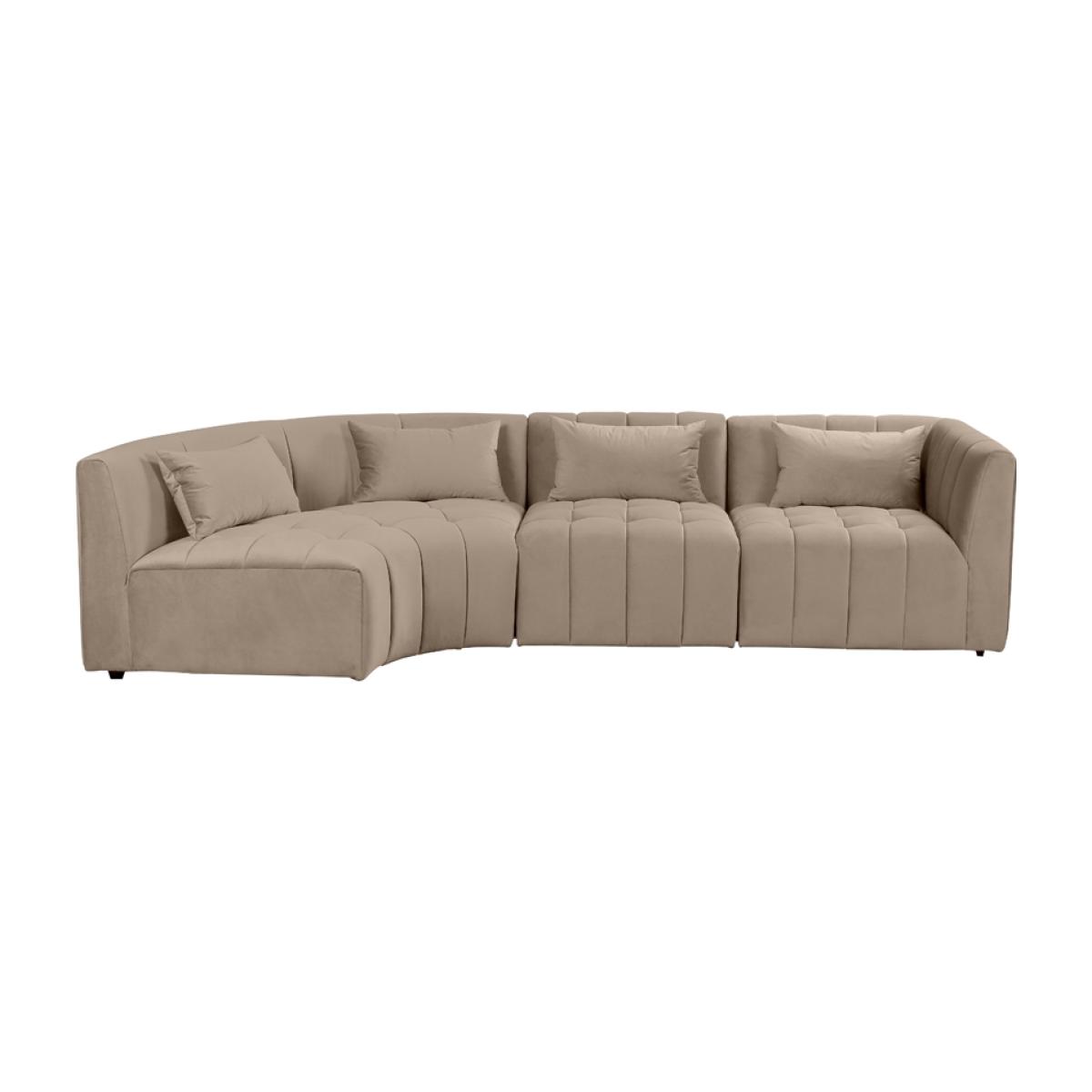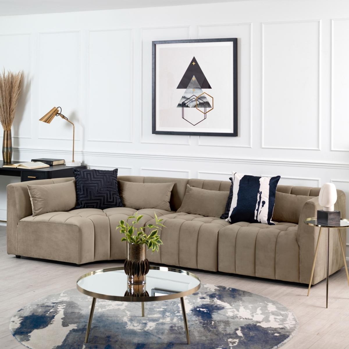 The Essen Left Hand Curved Corner Sofa in taupe is a versatile choice that works well in both modern and transitional interiors. Its gentle curve adds a welcoming, soft look to any living space, making it ideal for creating a cosy yet stylish seating area. I love pairing it with neutral-toned rugs and layered cushions to enhance its understated elegance. Practical styling tips include placing a scatter of textured throws and cushions in complementary colours to add visual interest, while keeping accessories minimal for a sleek, uncluttered vibe. This sofa's shape also makes it perfect for open-plan layouts, encouraging conversation and flow within the room.