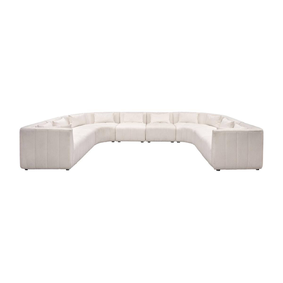 Contemporary design inspired by luxurious 1970’s Californian interiors. Designed to create an inviting seating zone in large and open plan interiors. Will comfortably seat 10-11 people. Sprung seat and backrest with deep foam and fibre topping. Upholstered in soft, tactile chenille fabric. Constructed from modular components that simply and securely connect together, allowing for ease of installation and multiple configurations. In the unlikely event that you are dissatisfied with your sofa let us know (within 7 days) and we will happily collect it and fully refund you, including the return shipping cost.