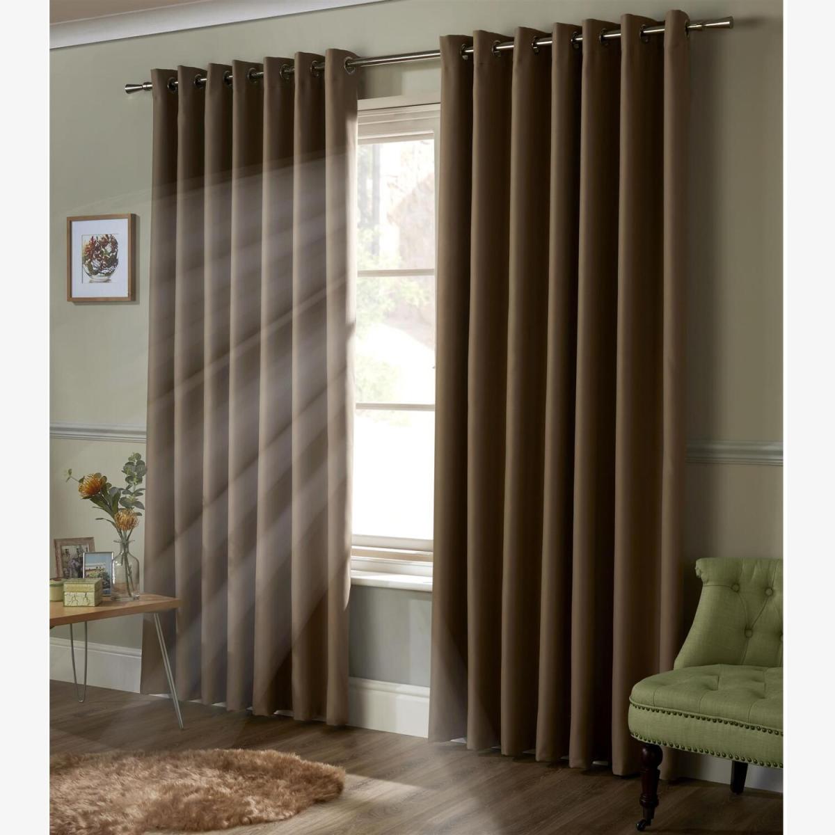Plain satin feel curtains. Designed with a triple weave semi-blackout fabric so do not require linings and will block out up to 95 light. Finished with an eyelet ring top heading.