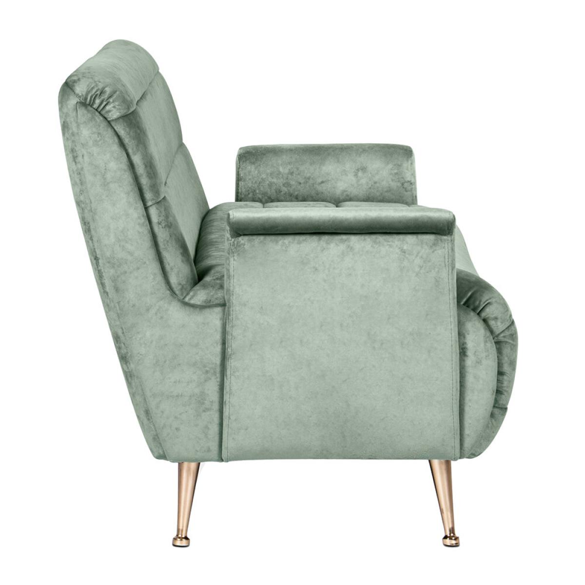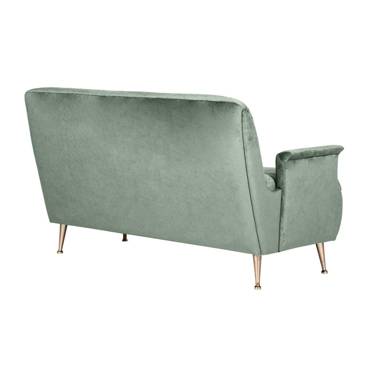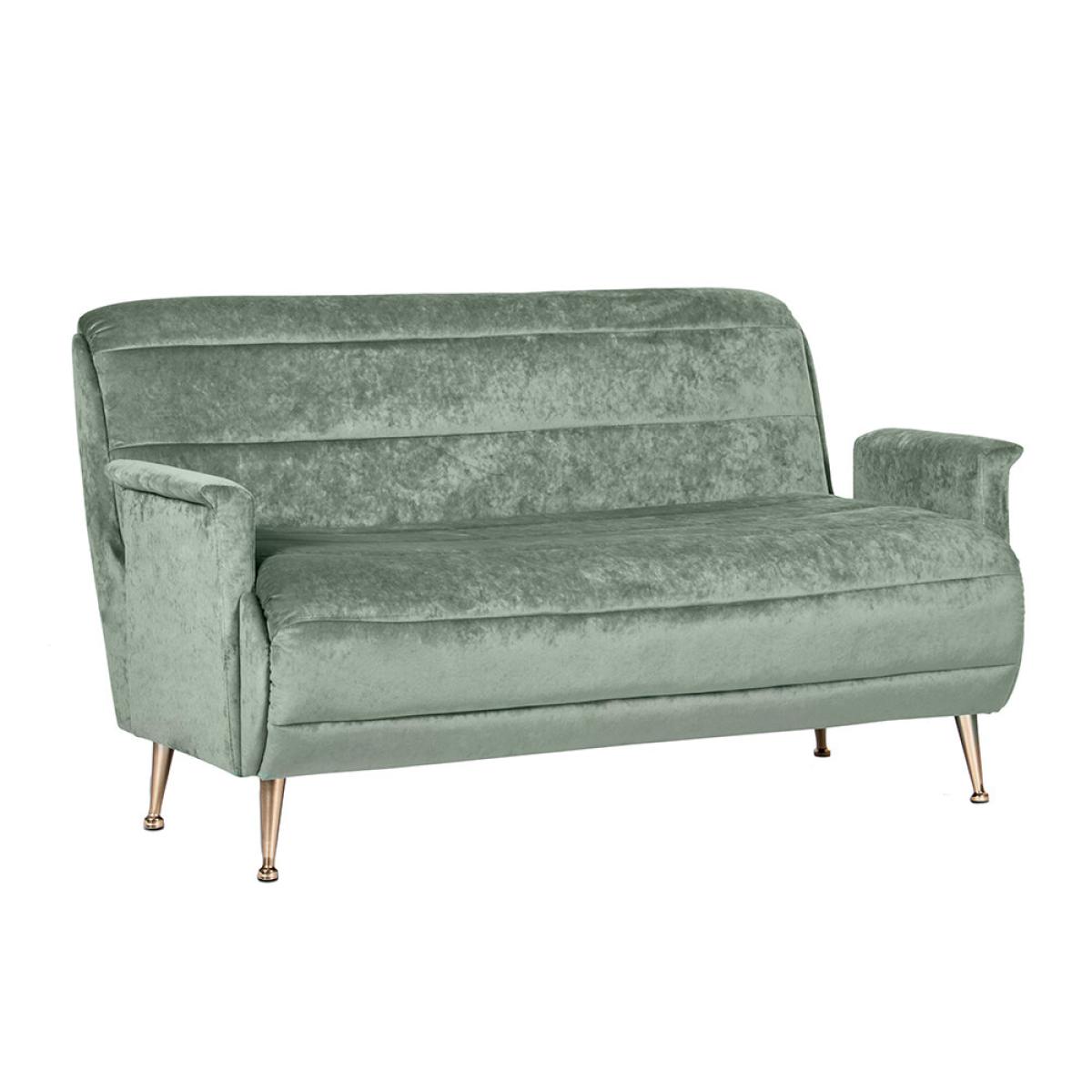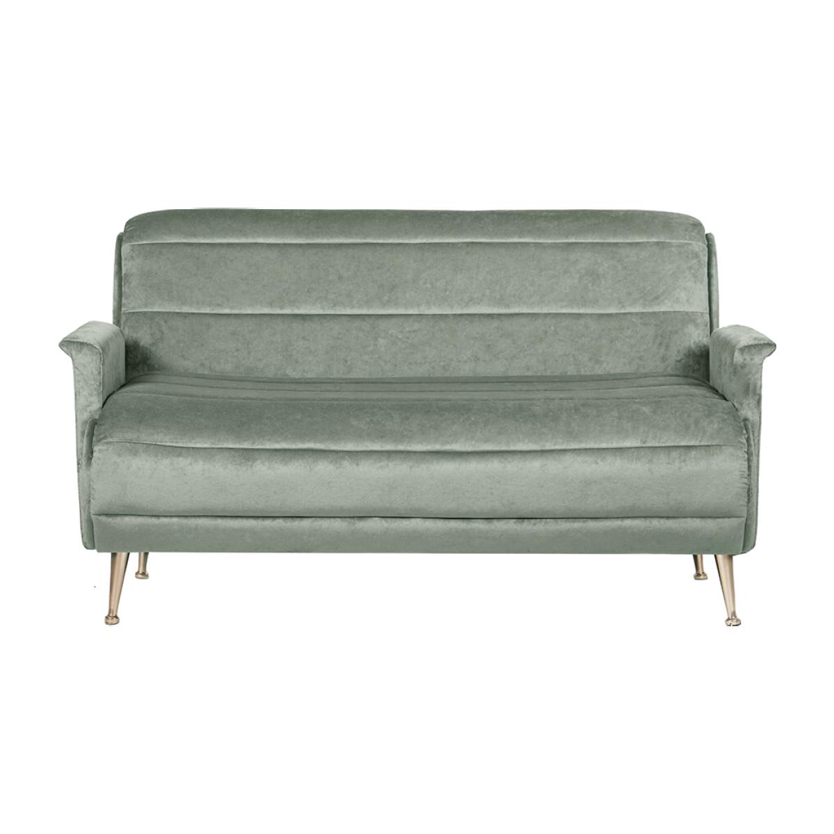 Lounge in luxury with this Bardot sofa from Essential Home. Featuring a stoking mid-century modern design, it is adorned with a sumptuously soft sage green velvet and is complete with four polished brass feet.
