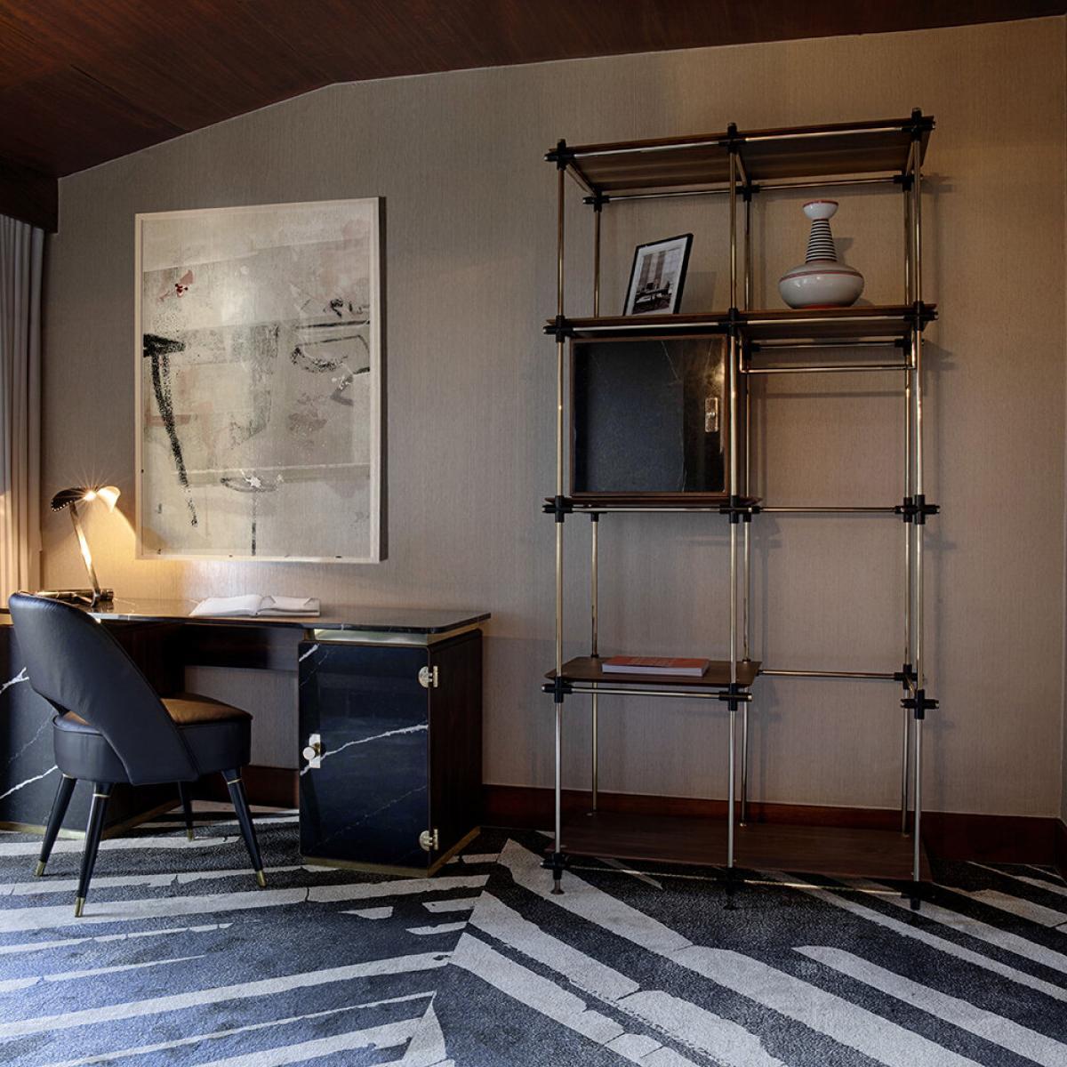 I love this shelf for its sleek combination of polished brass, Nero Marquina marble, and walnut - it offers a refined yet practical touch. It's versatile enough to work well in both contemporary and classic interiors, especially in spaces aiming for a sophisticated, modern look. Practical styling tips include using the marble surfaces for display of decorative items or books and balancing the shelves with plants or ceramics to keep the look lively. The open framework allows for easy visual flow within a room, making it ideal for creating layered displays or showcasing statement pieces. Overall, it adds a touch of luxe functionality to any living or working space.