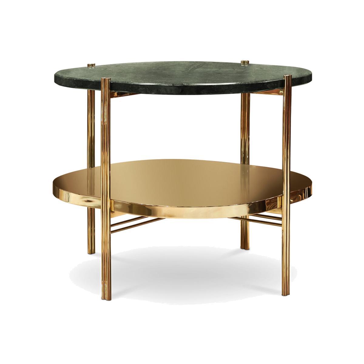 Make a statement in the home with this Craig side table from Essential Home. Expertly crafted from polished brass and marble, it features a beautiful retro style in shiny gold and forest green tones.