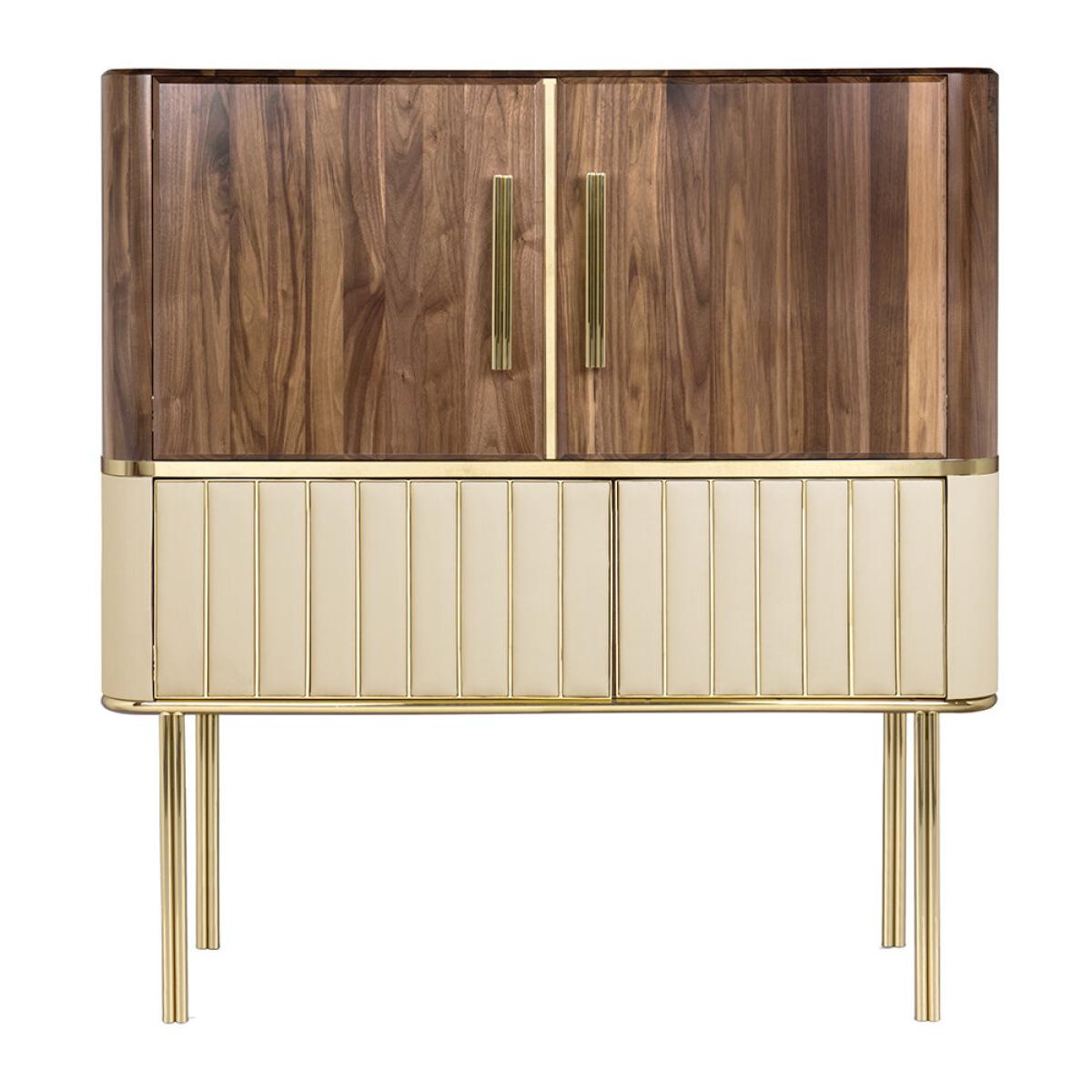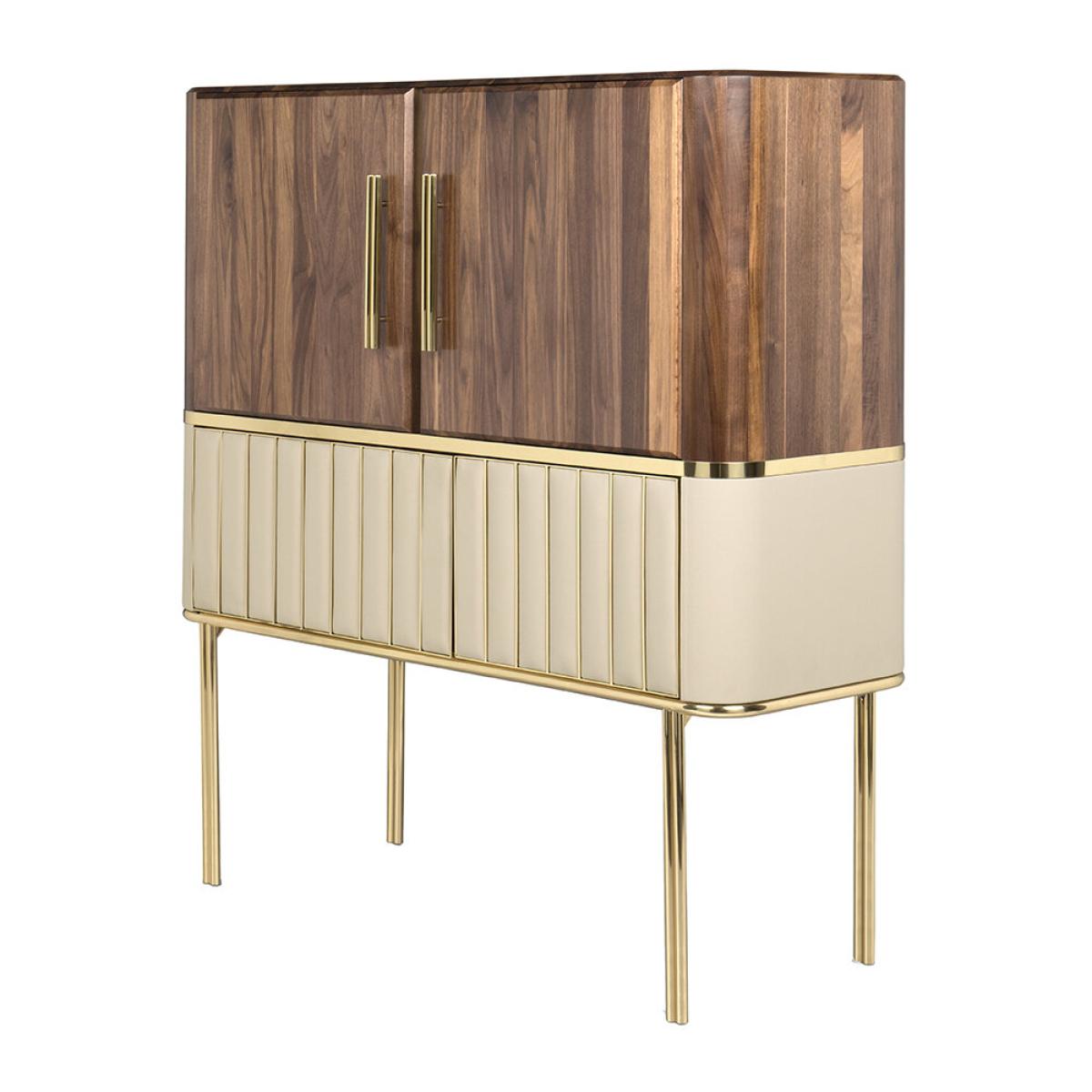 Essential Home - Hepburn Cabinet - Walnut Wood/EH Beige Leather/Polished Brass