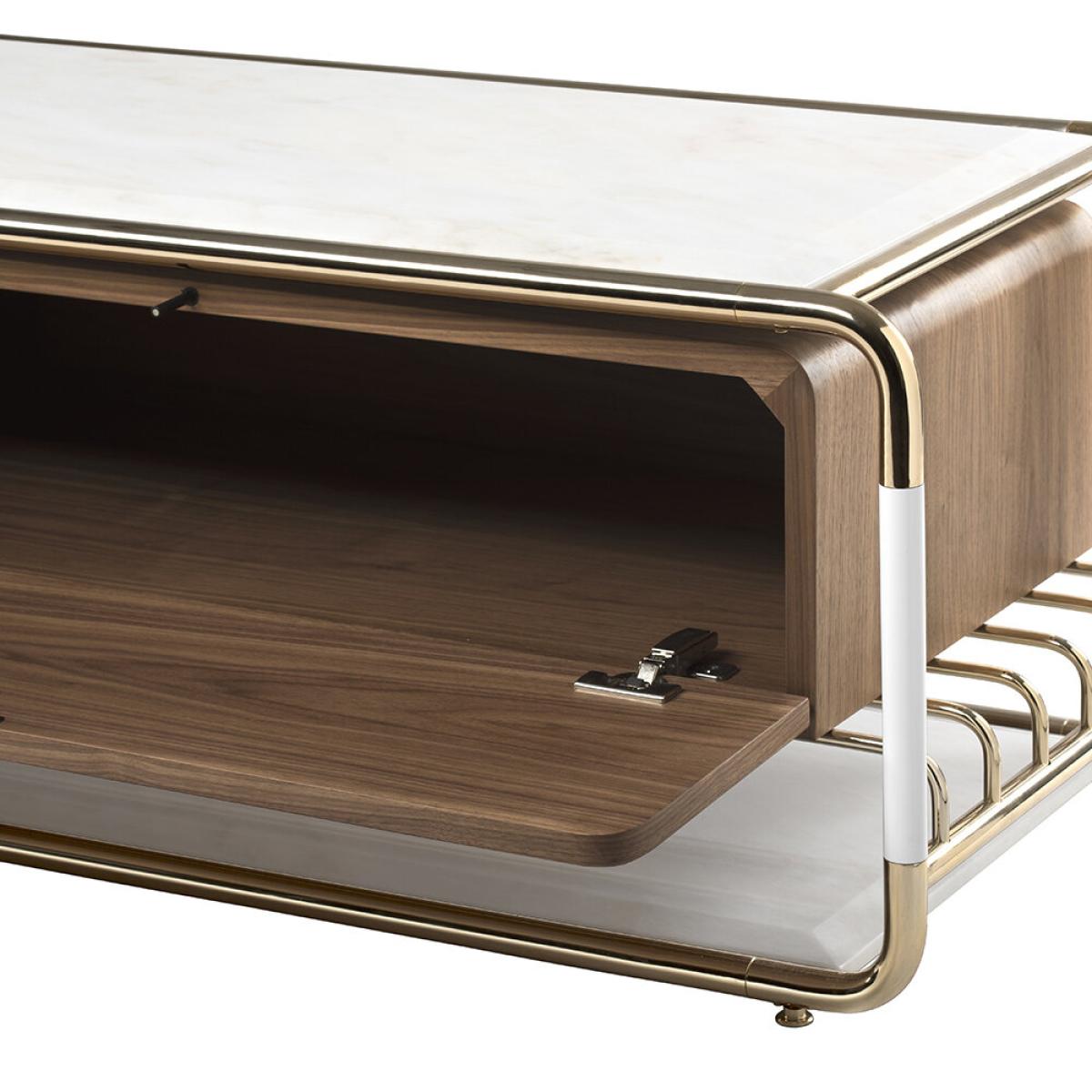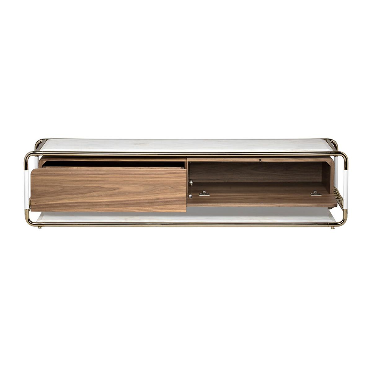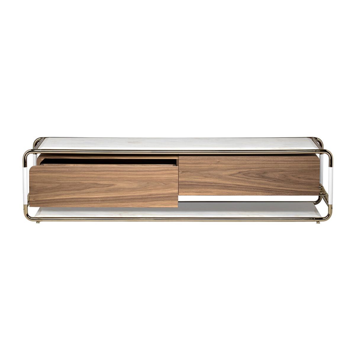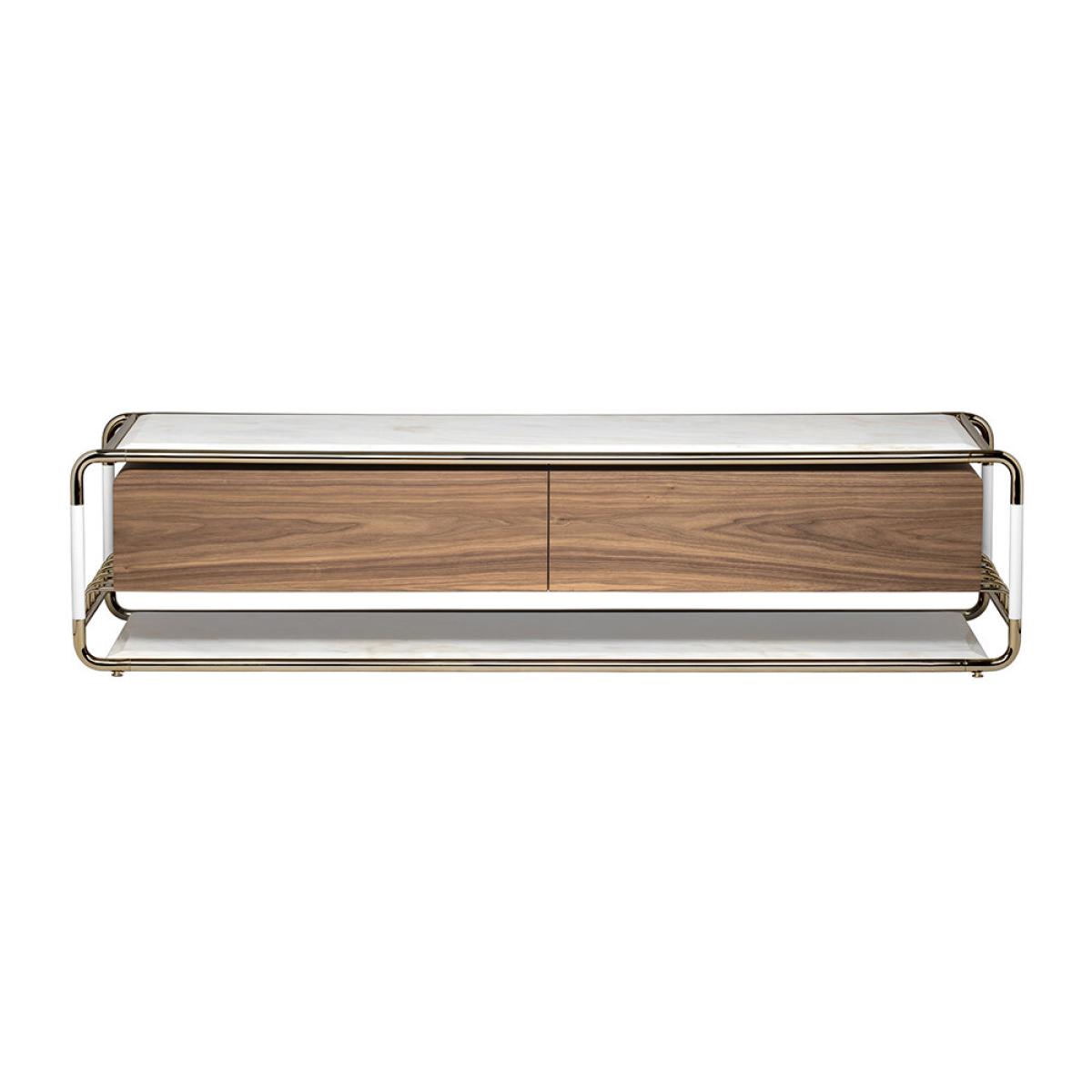Essential Home - Lautner TV Table - Polished Brass/Estremoz Marble/Varnished Walnut