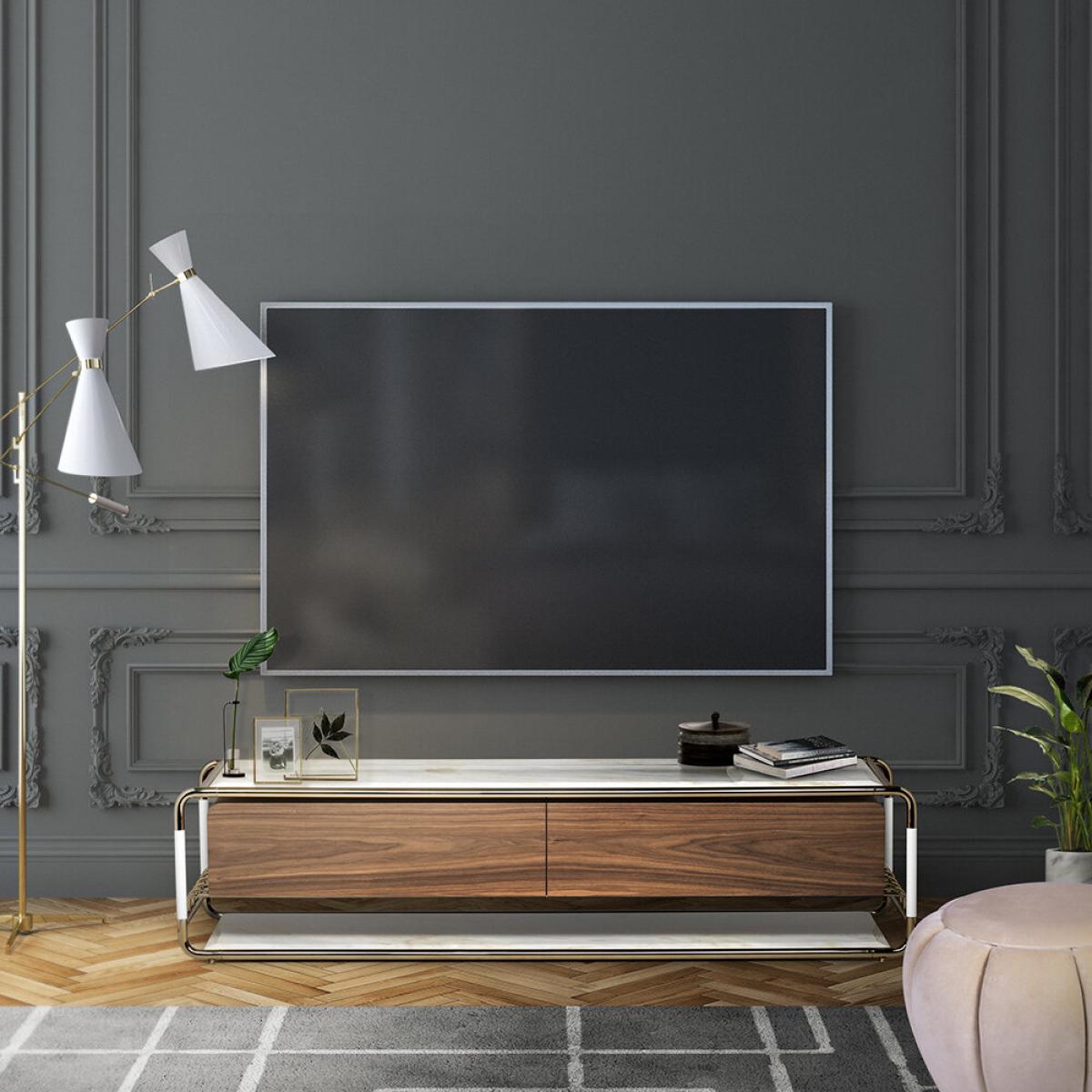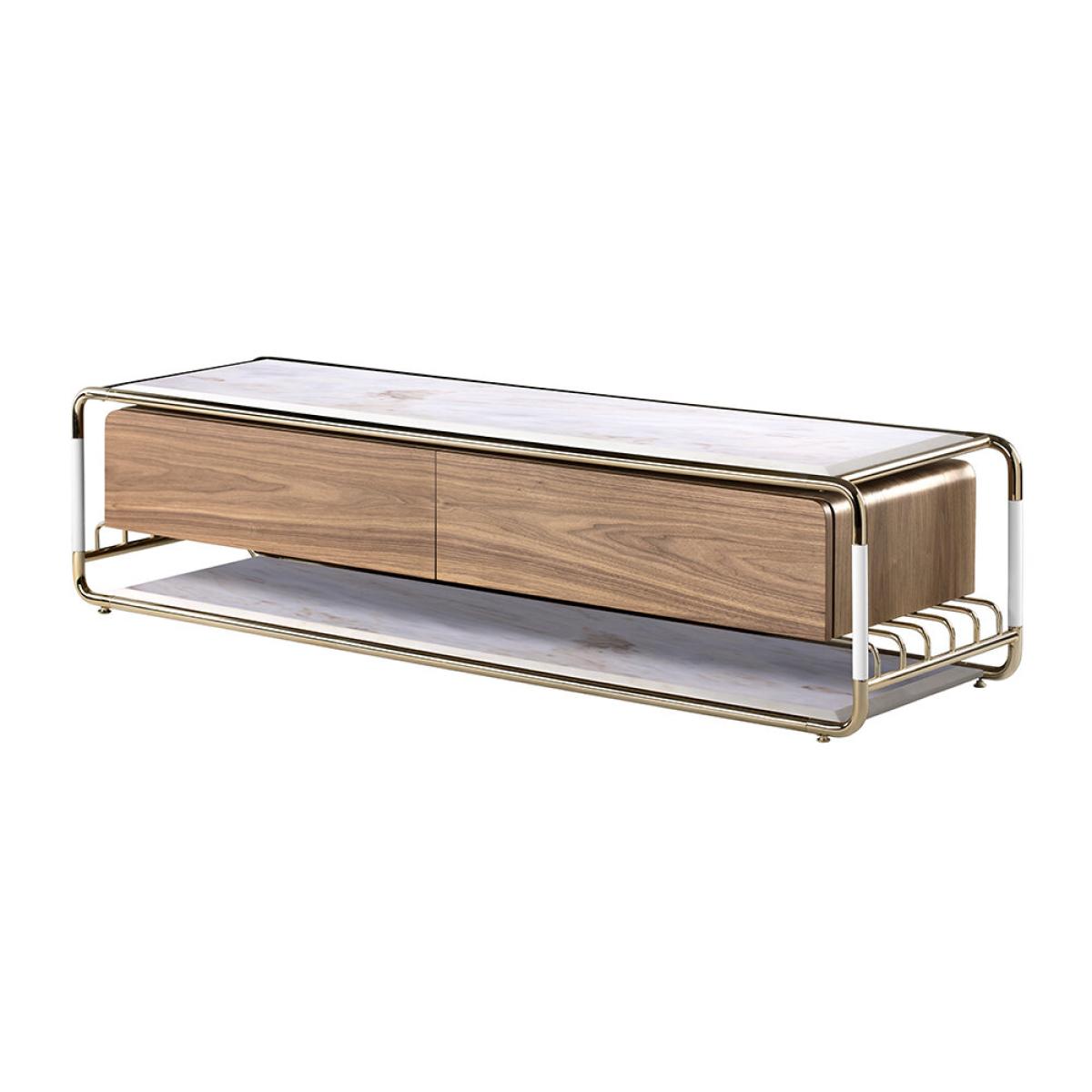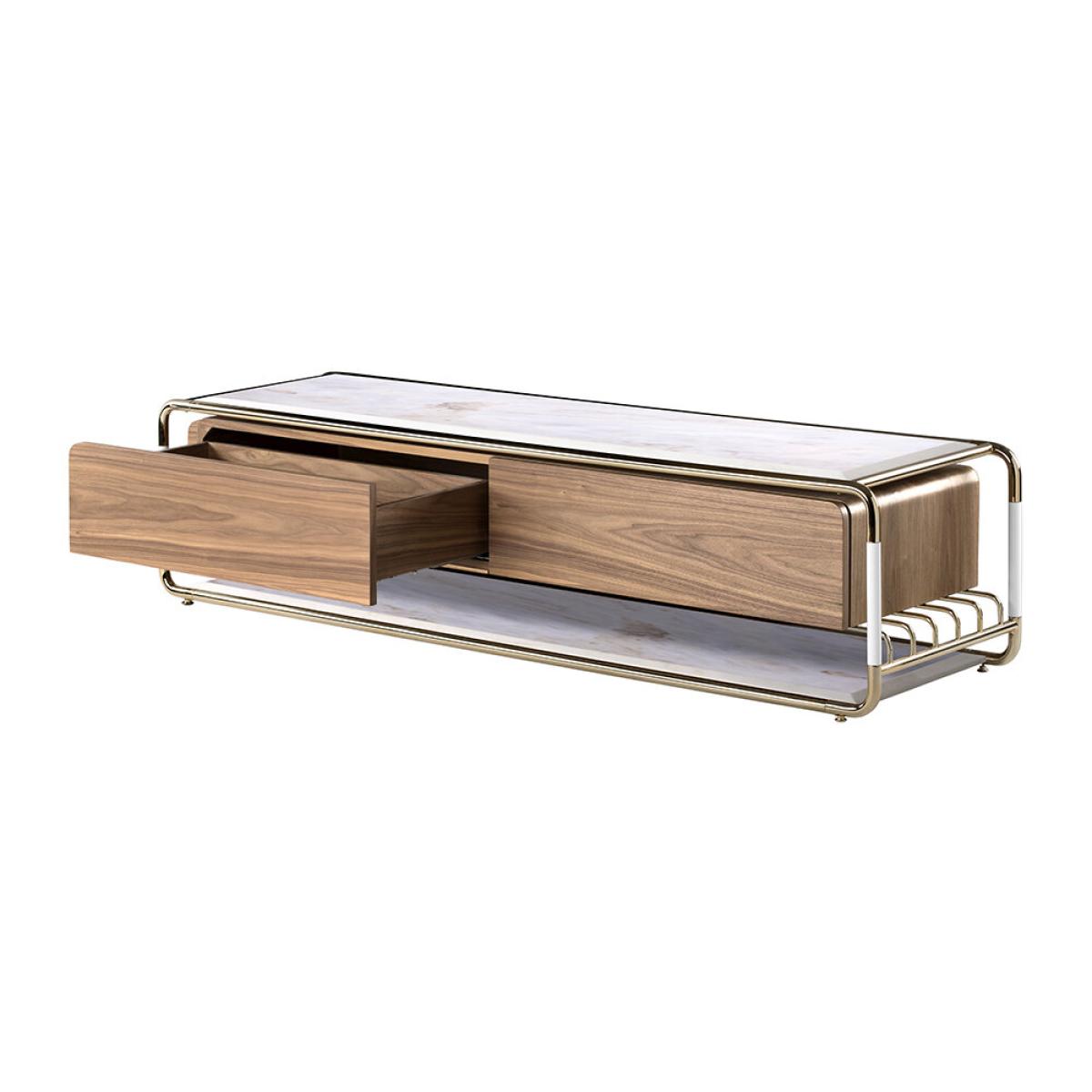 Essential Home - Lautner TV Table - Polished Brass/Estremoz Marble/Varnished Walnut