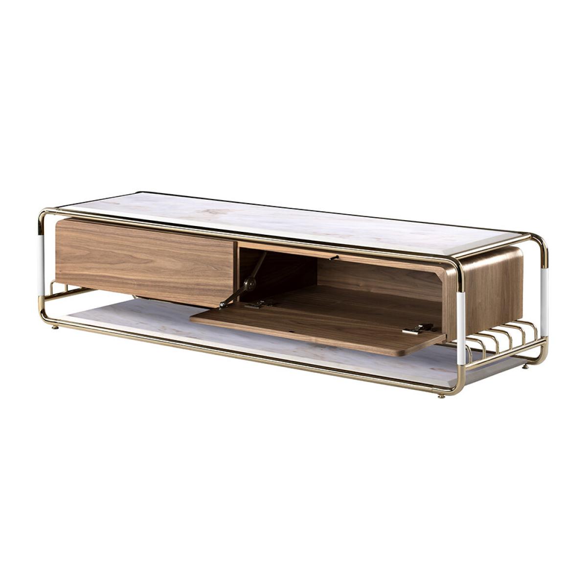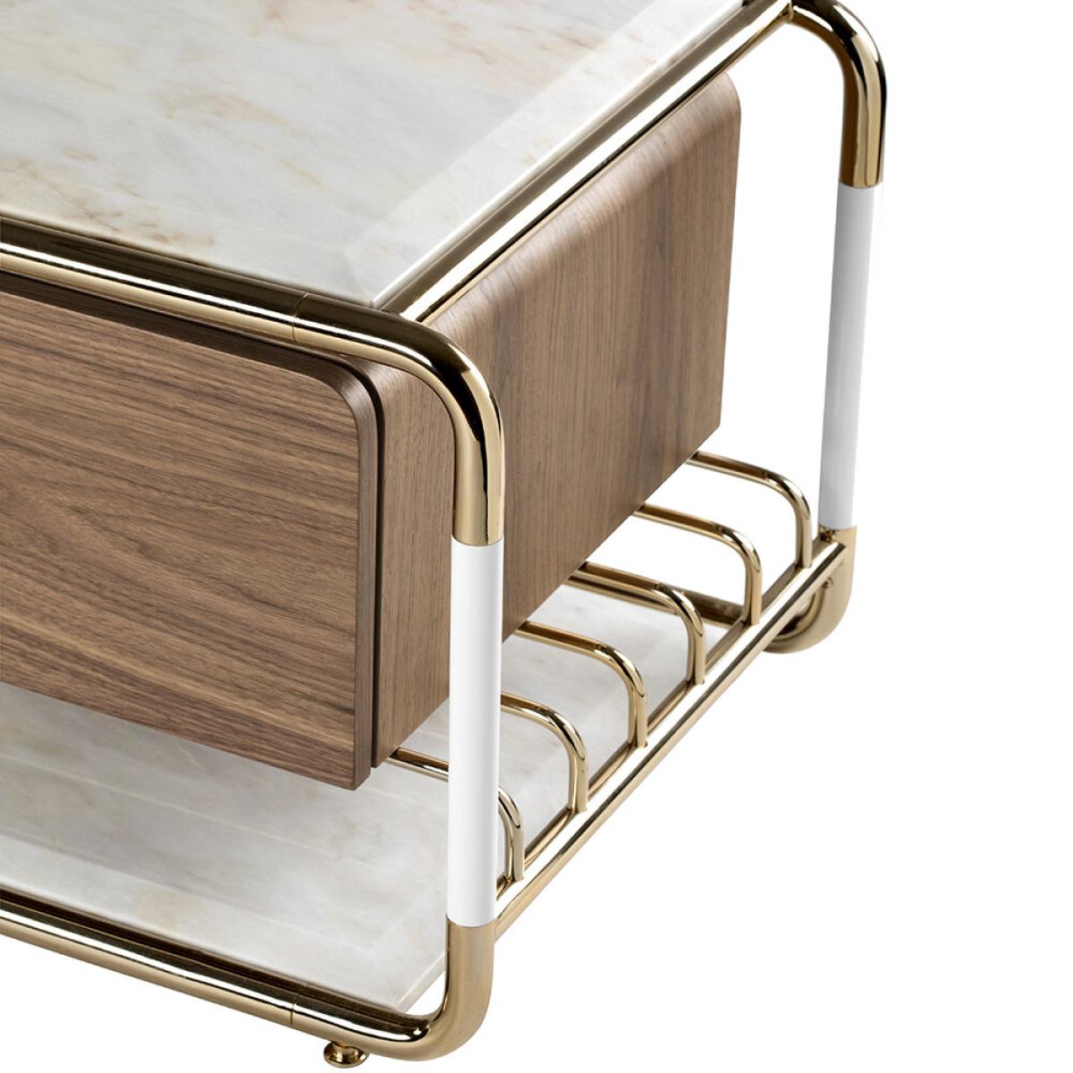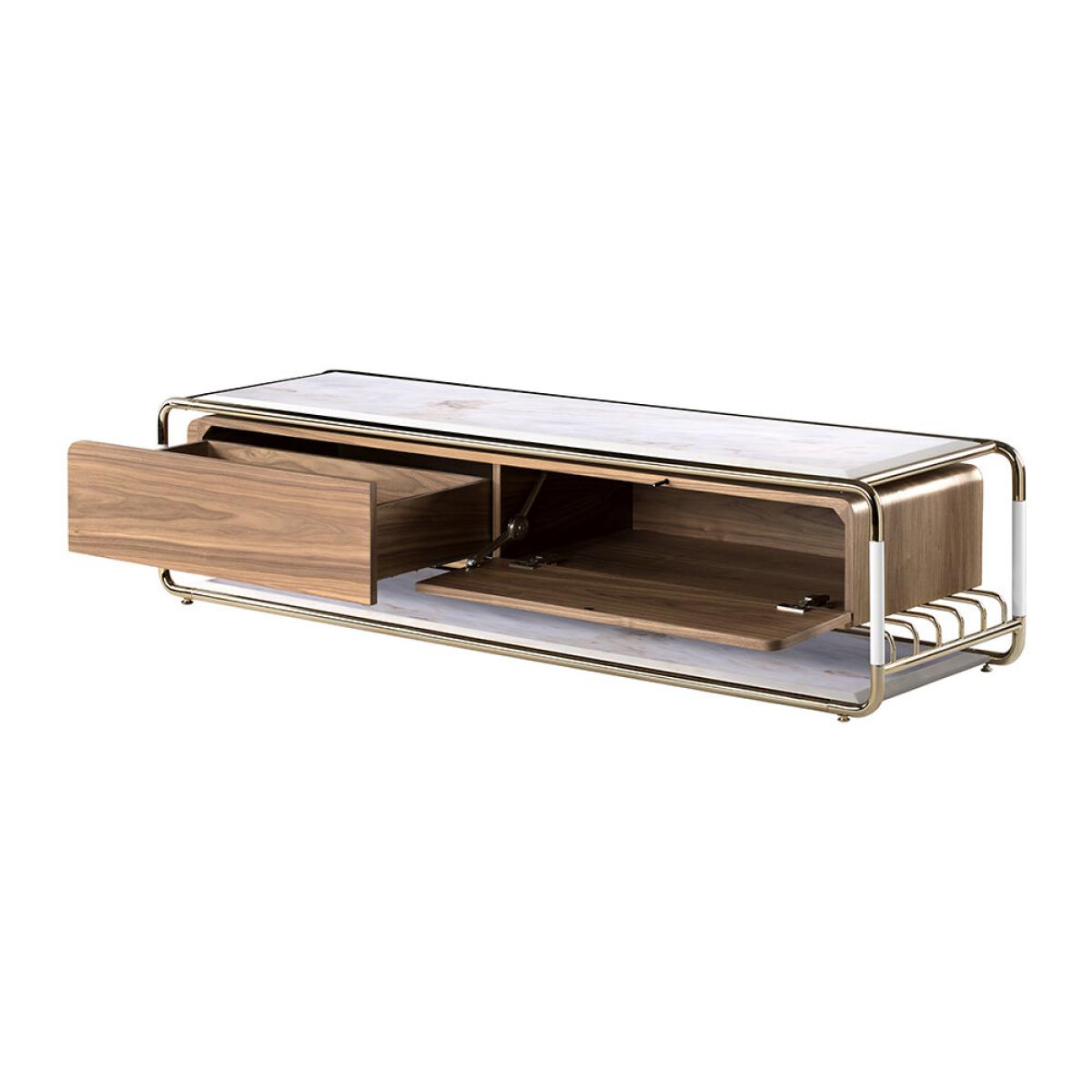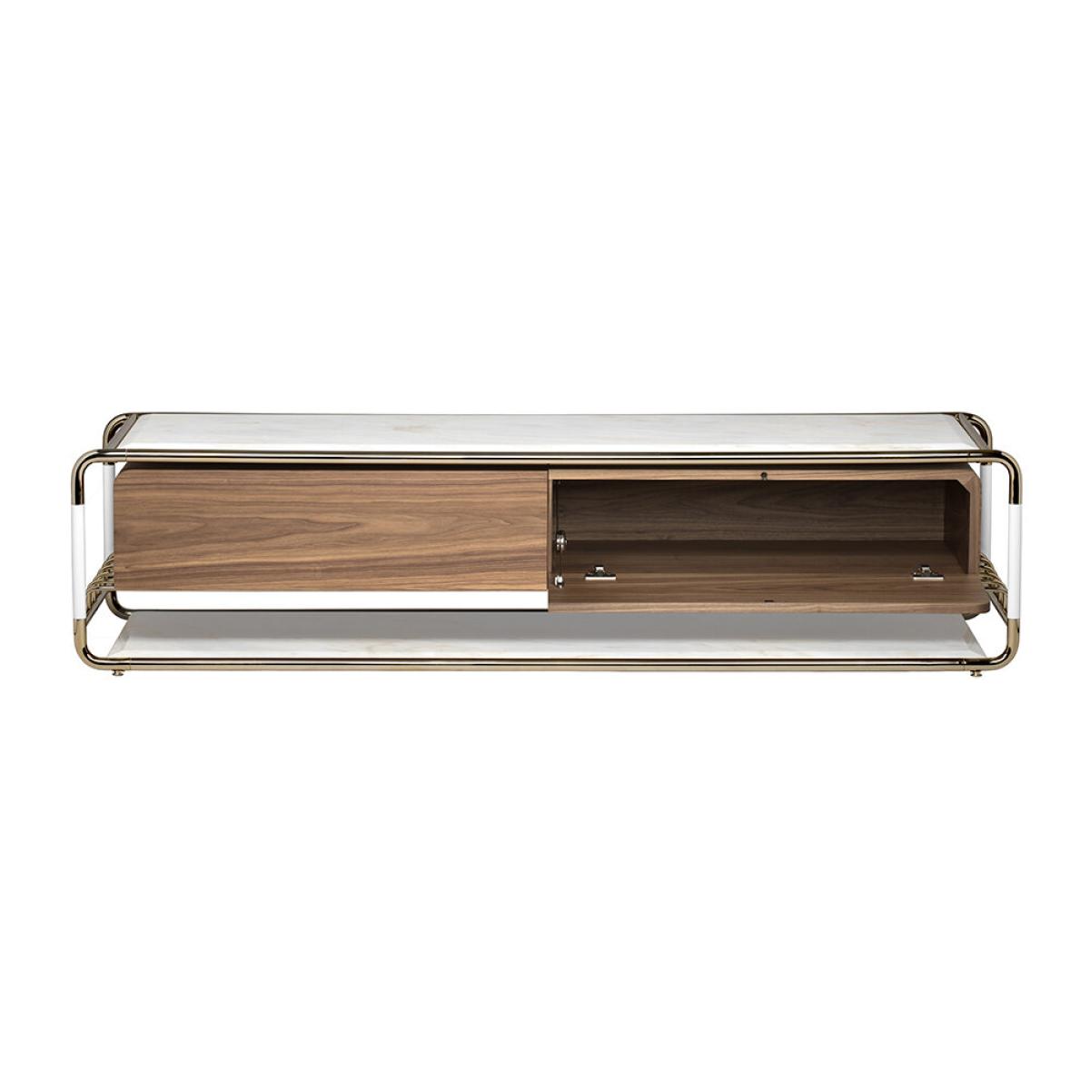 Essential Home - Lautner TV Table - Polished Brass/Estremoz Marble/Varnished Walnut