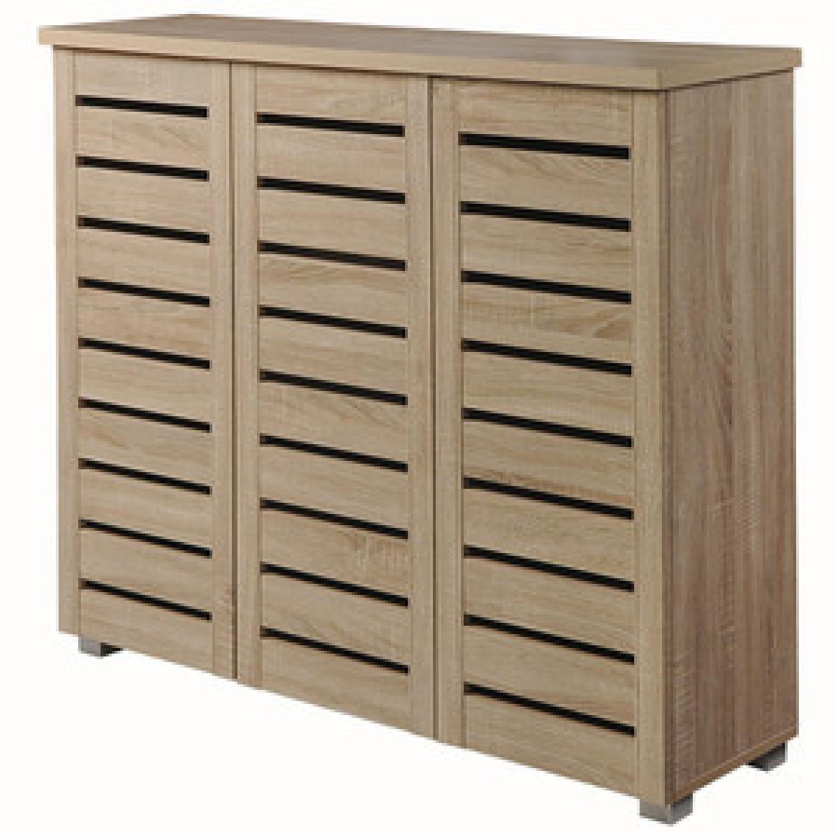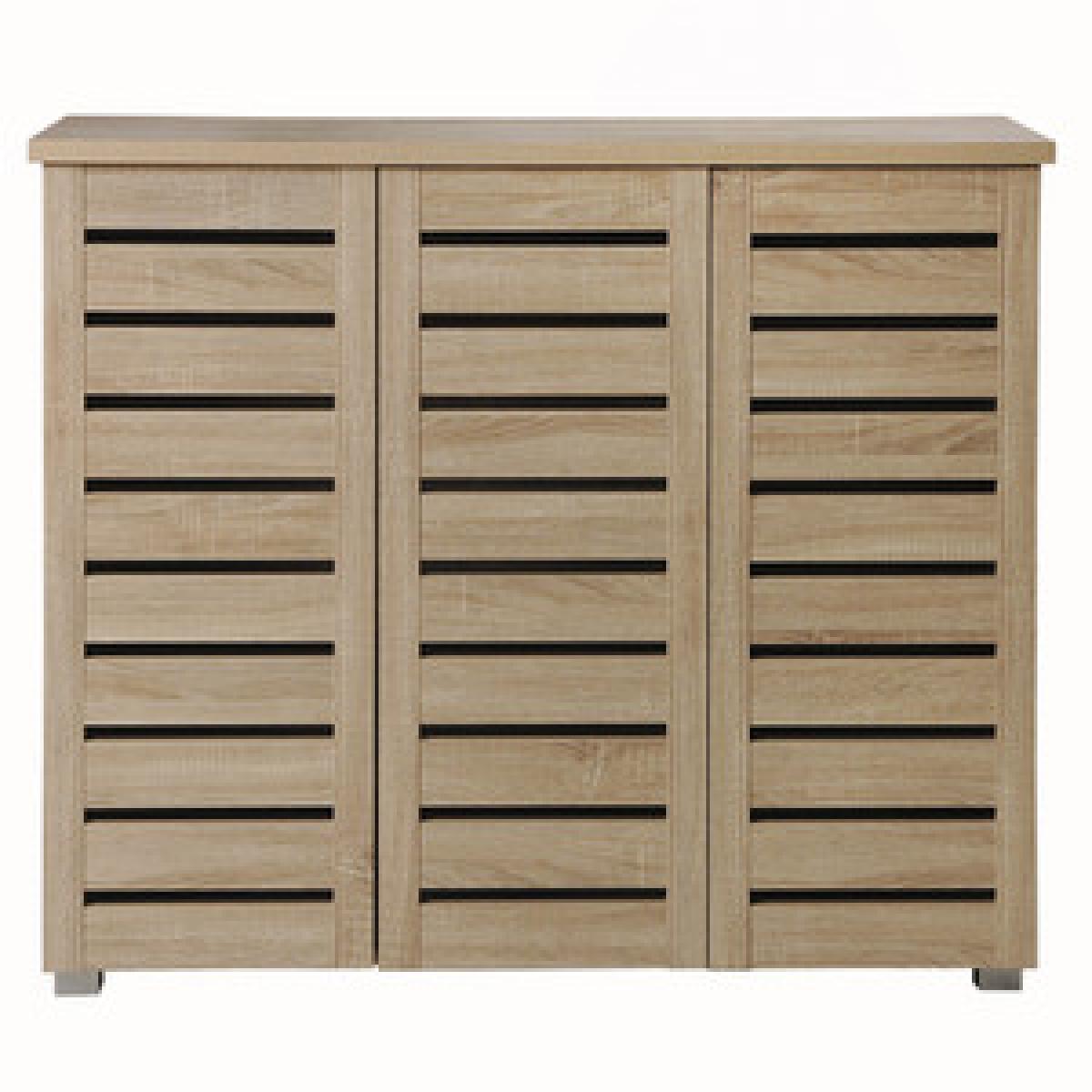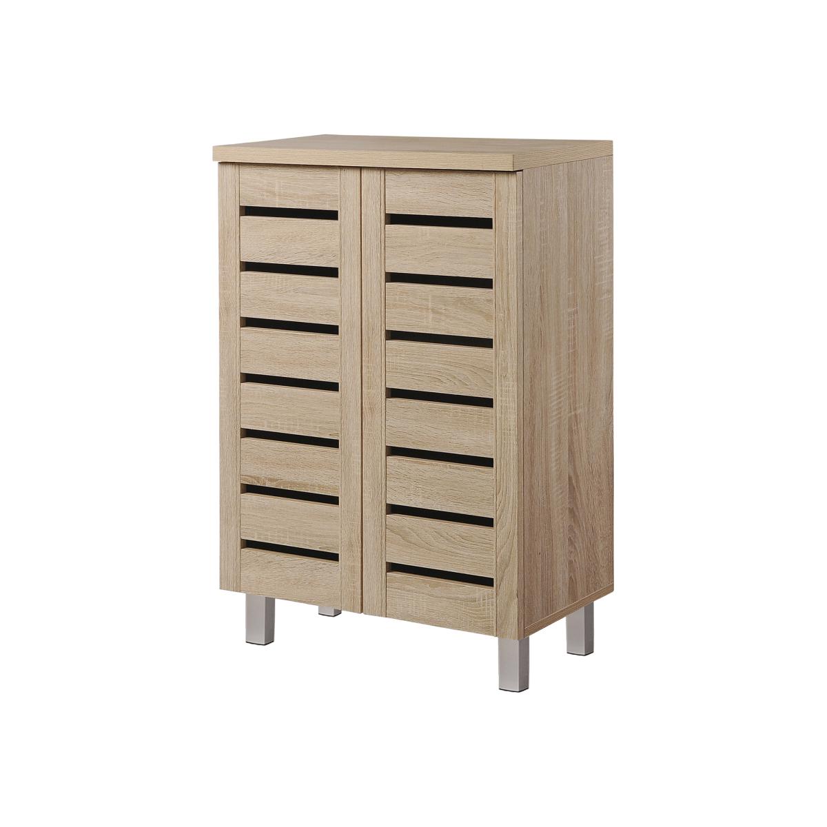 Essentials shoe storage cabinet is a contemporary design enhanced by the Sonoma Oak wood finish.