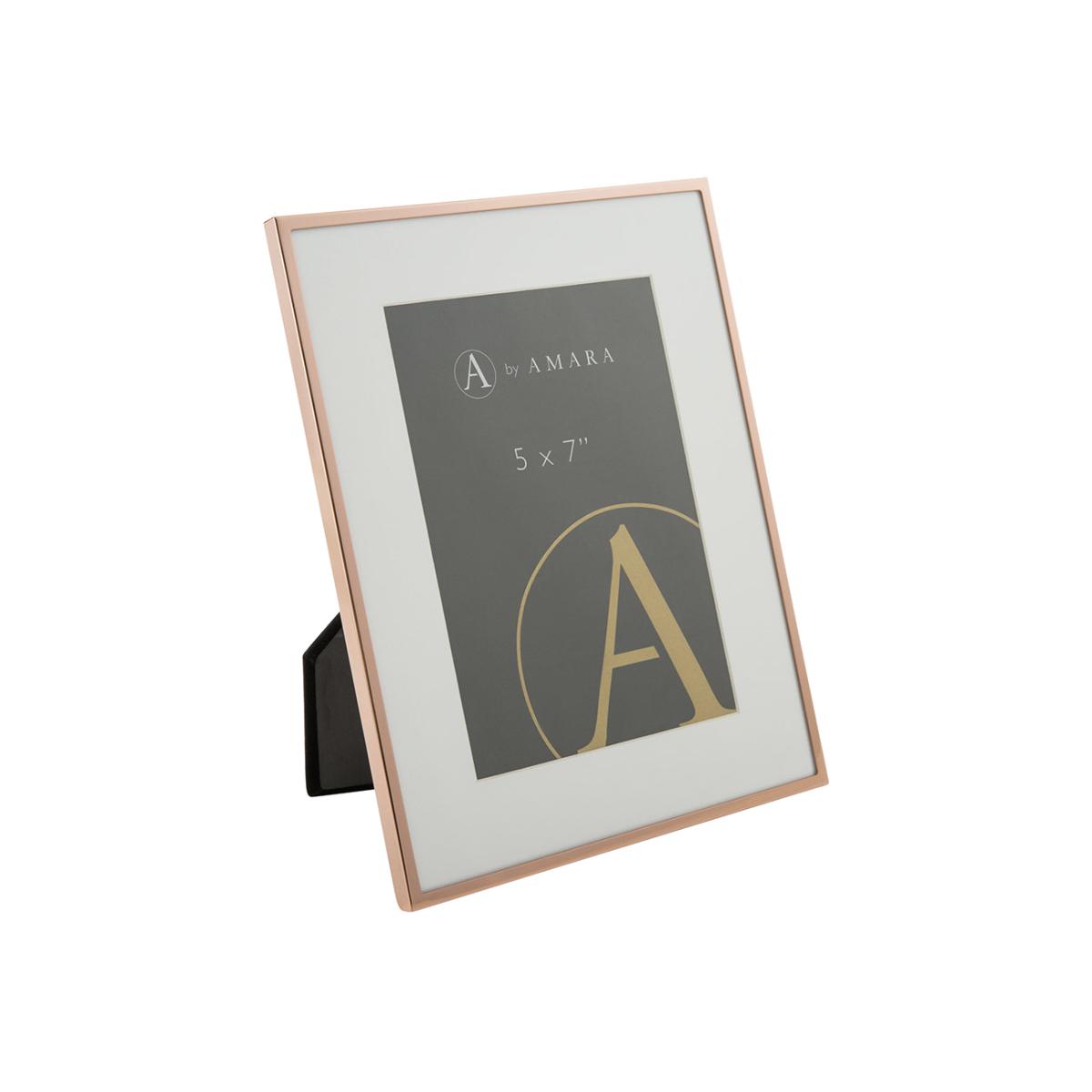 Display your treasured memories for all to see with this photo frame from Essentials. Including a white mount, this classically elegant frame is simple in design and available exclusively at Amara. With a narrow frame, it is in plain copper plated steel with a mirror polished shine. Key features: * Photo frame available exclusively at AMARA * Material: copper plated steel, glass * Aperture size: 5x7" * Wonderfully simple design * White mount