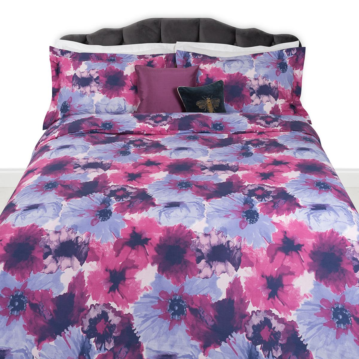 Bring vibrant tones into your bedroom with this Flourish duvet set from Essentials. Made from 100% cotton, this set includes a duvet cover and pair of matching pillowcases. Featuring a bold floral design in luscious pink and purple shades, this set is sure to brighten up any bedroom.