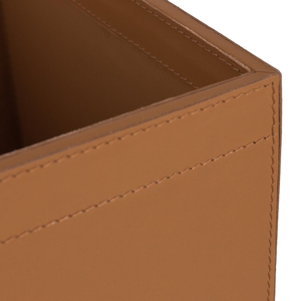 I really like this bin because the leather finish adds a touch of luxury and warmth to any space. It works particularly well in contemporary or rustic interiors where natural textures are key. The tan colour is versatile and can complement both neutral palettes and richer tones. For styling, try placing it in a home office or bathroom for a sophisticated yet functional touch. To update the look, pair it with other leather accents or natural materials like wood and woven textures. Its simple cubic shape makes it practical for small spaces, while offering a chic upgrade to typical waste bins.