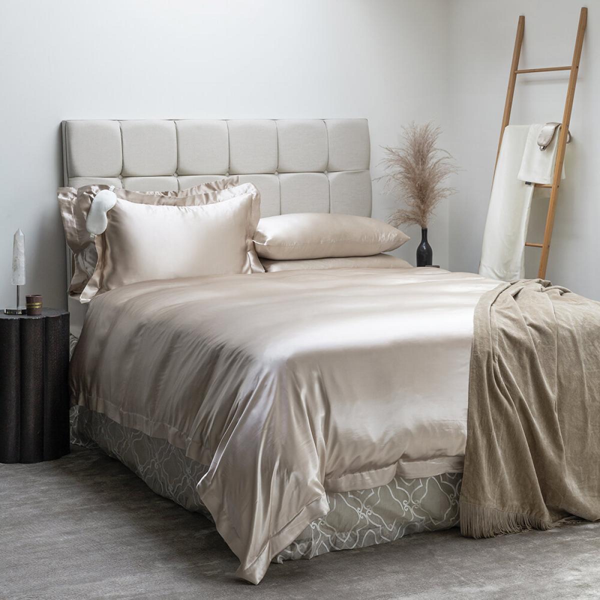Drift off in pure luxury with this silk duvet cover from Essentials. Made from beautifully soft 19 momme 100% silk, it features a smart Oxford border with delicate stitching for super luxurious bedding that feels as good as it looks. Silk bedding has long been the best kept secret of the beauty world, boasting a host of anti-ageing properties from keeping your hair frizz-free to preventing sleep creases on your skin. Pair with other items from the range to create your dream sleeping space.