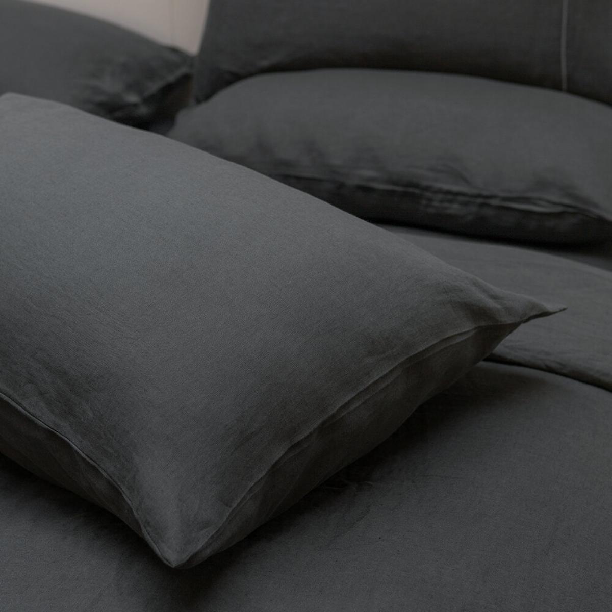 Essentials - Stonewashed Pure Linen Duvet Cover - Anthracite - Super King