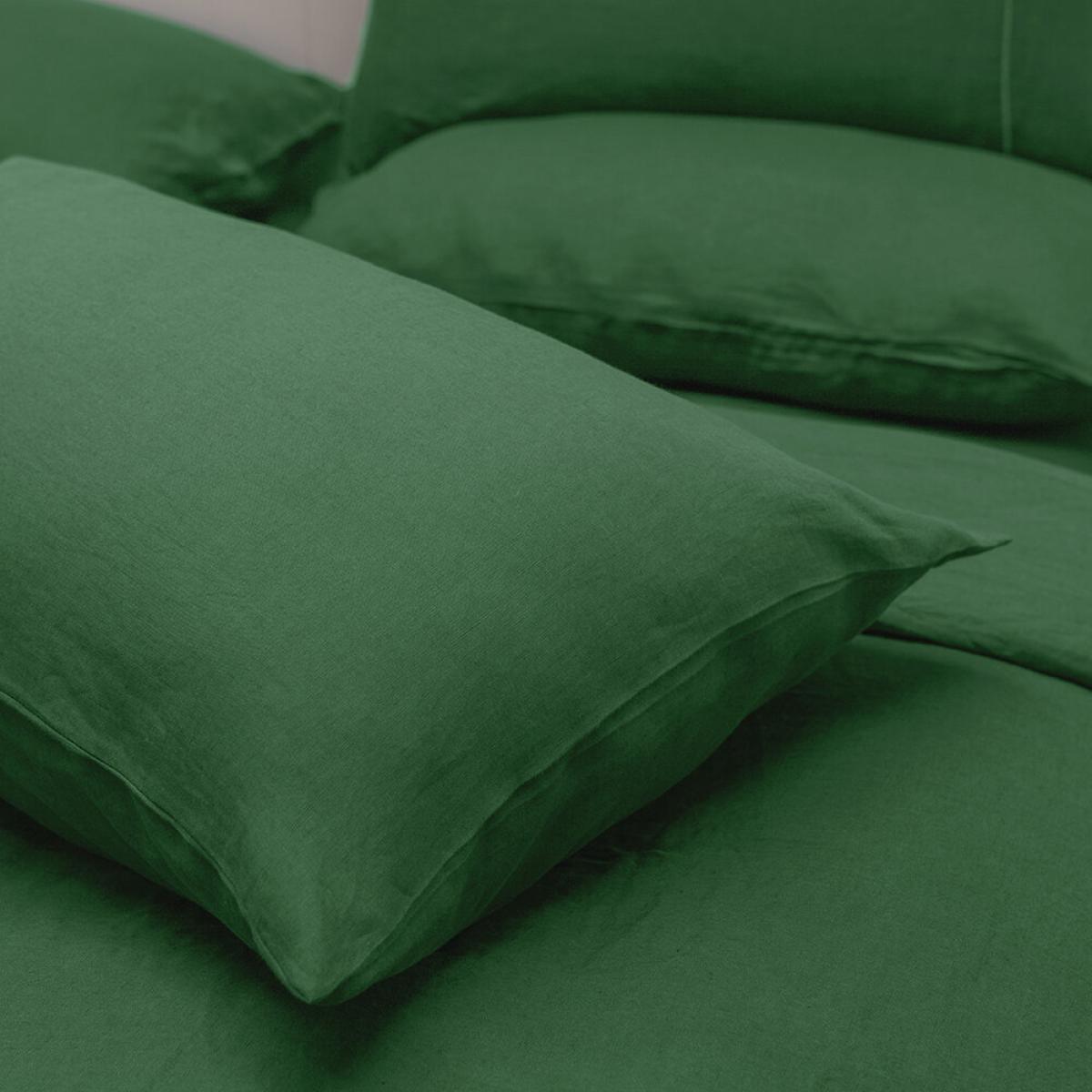 Essentials - Stonewashed Pure Linen Duvet Cover - Emerald - Super King