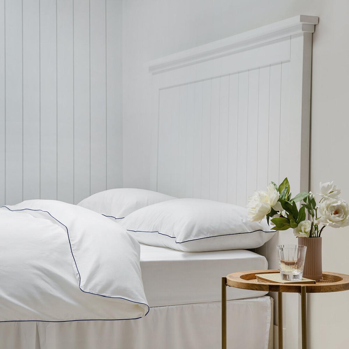 Essentials - Tencel Cotton Blend Fitted Sheet - White/Navy - Double