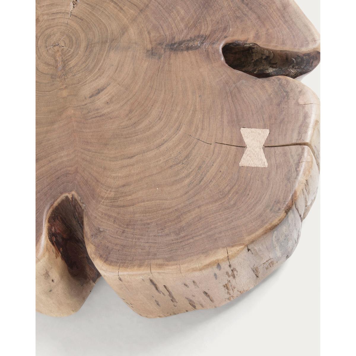 The Essi Ø 65 x 60 cm coffee table is a versatile piece that works well in both contemporary and rustic interiors, thanks to its natural, organic aesthetic. I love its chunky wooden design - it adds texture and warmth to a space, making it feel more inviting. Practical styling tips include pairing it with neutral-toned sofas and adding layered textiles or accessories like candles and greenery to soften its raw edges. It also serves well as a statement piece in minimalist schemes or cosy, layered living areas, offering both function and character.