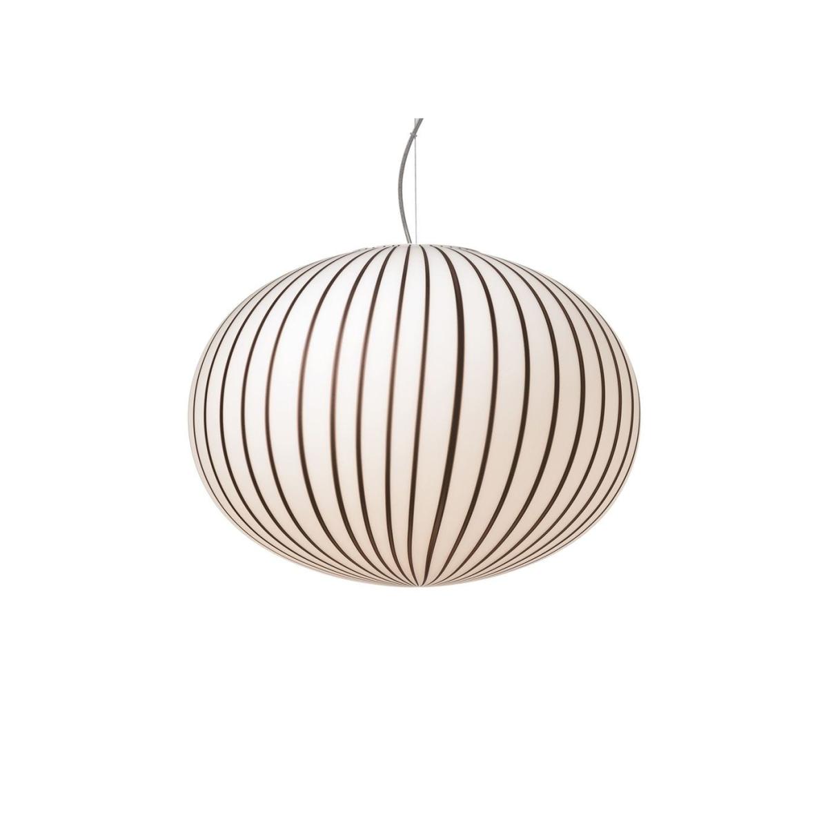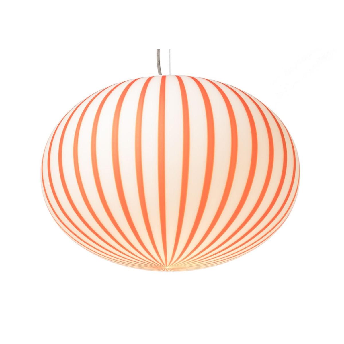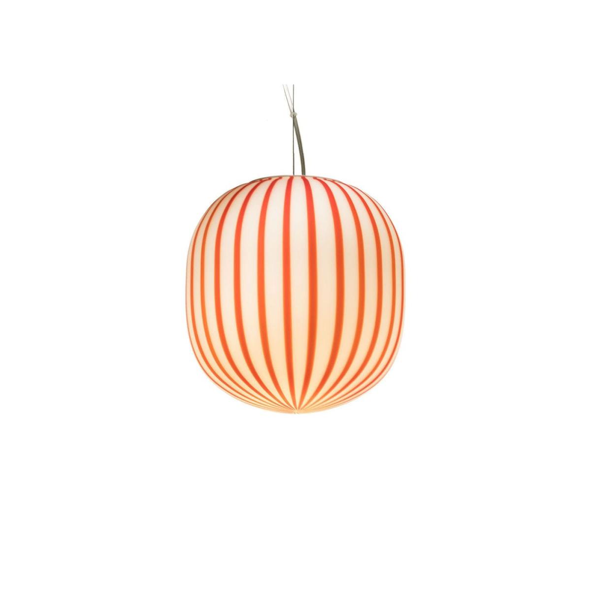 The Filigrana Collection is carefully crafted using a highly skilled, traditional production process that originates from the island of Murano. Constructed with Venetian hand-blown glass, the surface of the pendant is delicately acid-etched to allow for a soft, diffused light to seep through. Defined by its elegant, curved silhouette, this playful contemporary piece is adorned with bold candy stripes for a delightful finish.
