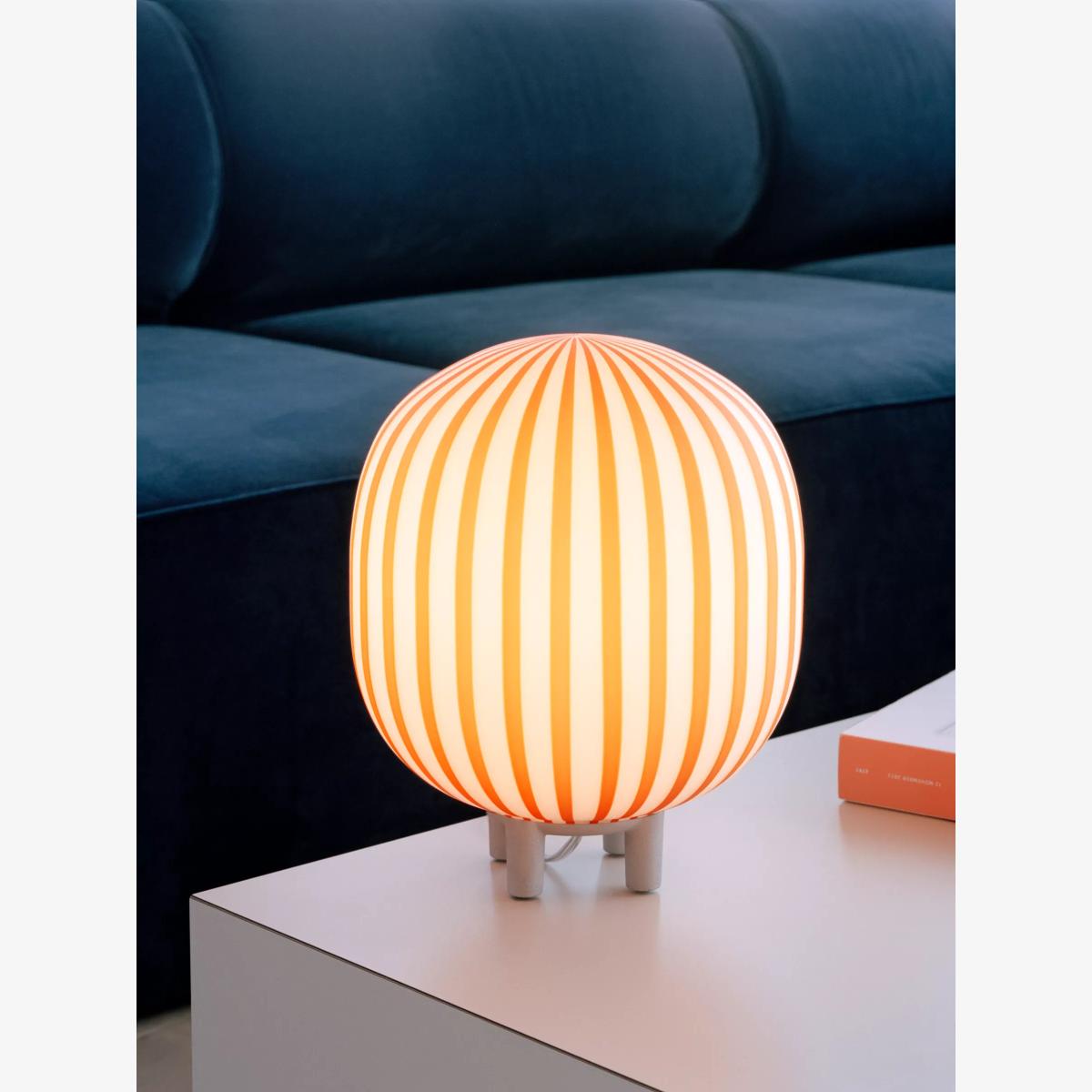 I love this table lamp for its bold, sculptural design and vibrant red hue, which makes it a real statement piece. It works well in modern, eclectic, or minimalist interiors, especially when you want a pop of colour and a touch of artistry. Practical styling tips include placing it on a side table or console in a living room to create a focal point, or pairing it with neutral surroundings to let the colour really stand out. Its rounded shape and striped pattern lend themselves to contemporary settings, while the colour makes it versatile enough for more playful or energetic spaces. Remember to keep surrounding accessories simple to let the lamp truly shine.