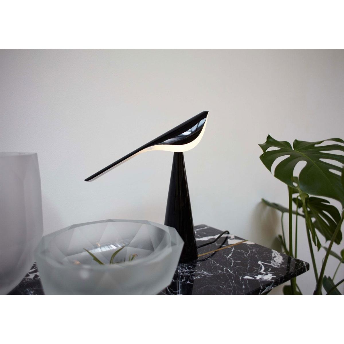 Nao Tamura’s creative bird-like lamp features a shade that has been carved from clear acrylic and glazed with a ceramic gloss for a flawless high-shine finish. It elegantly balances on a solid metal-formed base that allows this characterful lamp to perch on tables and shelves as a solo piece or within a flock. Perfect for adding unique style to contemporary homes.