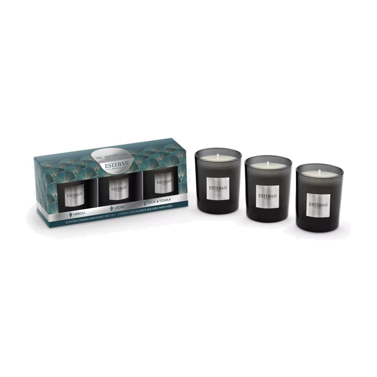 Discover 3 mini scented candles. These candles are made of a 100% new generation vegetable wax. This exclusive trio set is composed of: Neroli is a tribute to this graceful golden star adored by Queen Nerola who used it extensively. This floral fragrance is a subtle alliance of fresh white flowers on a background of luminescent sweetness and dark woods. Cèdre is an escape to lands filled with the scents of wild and majestic nature. Formulated with natural essential oils, Cèdre is a new approach to home indulgence, at peace with the environment and oneself. Teck & Tonka embodies a memory of Africa, made of spices, red land and warm woods. A perfect blend of power and fiery notes, finalised by a smoky almond facet that harmonises the whole, giving the fragrance an inimitable signature.