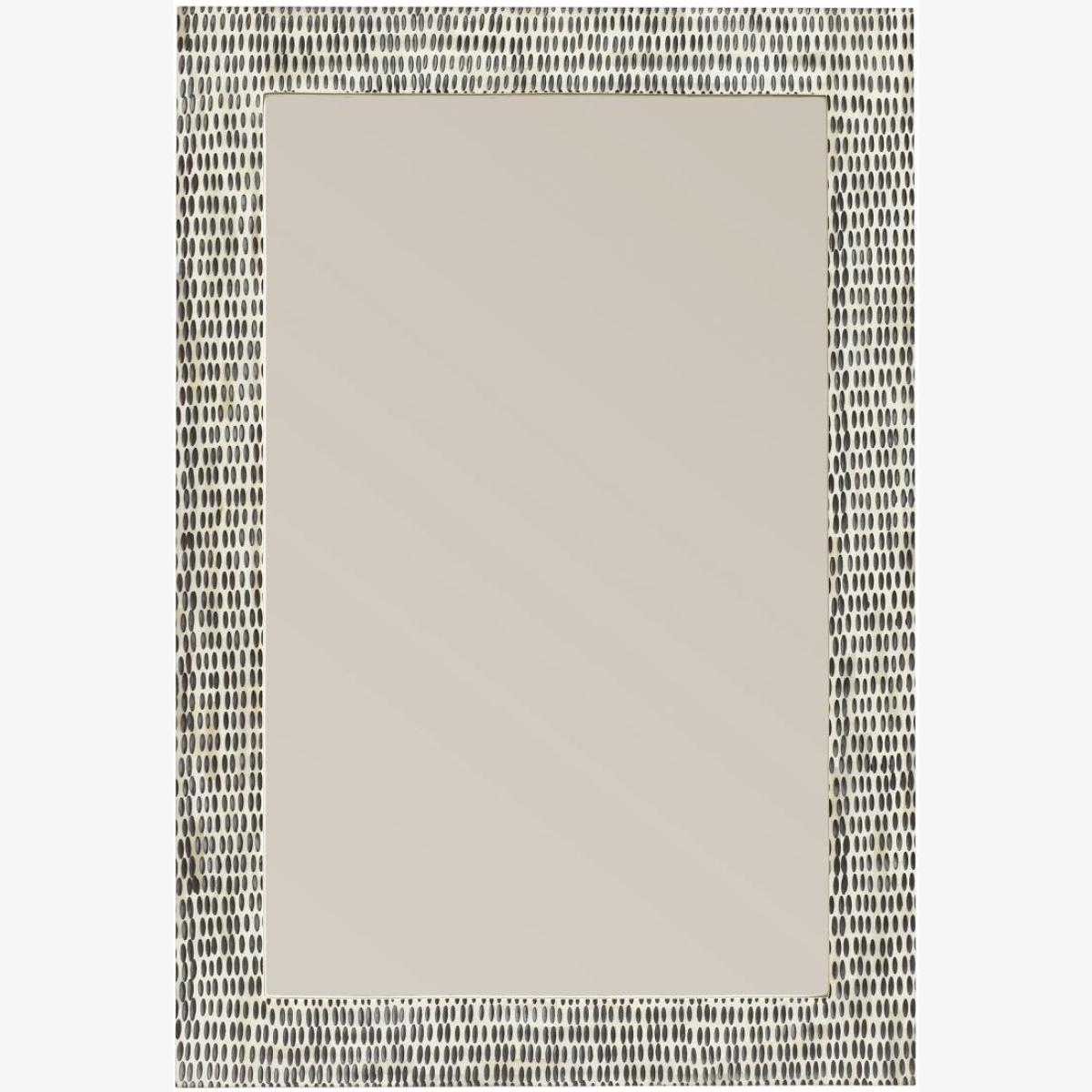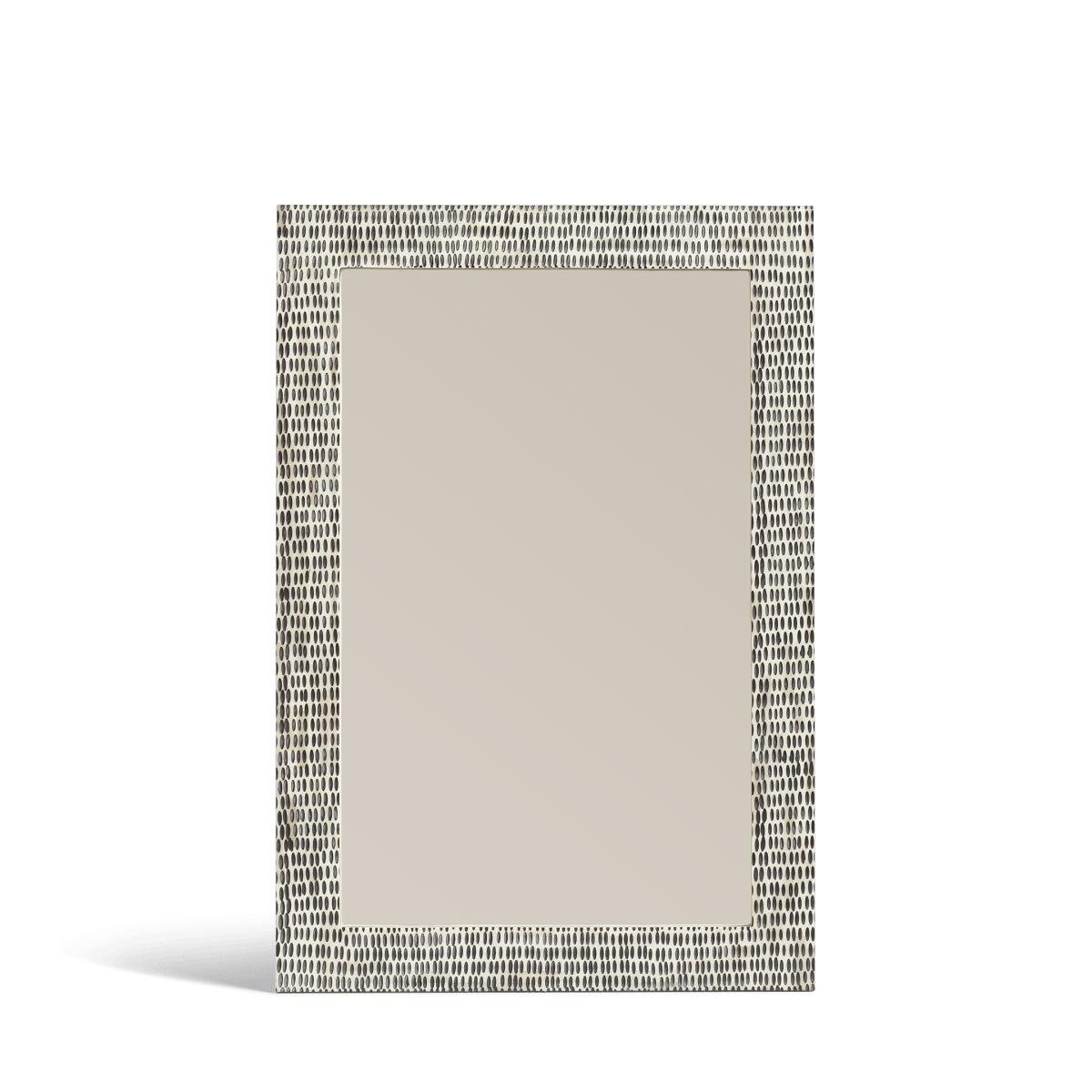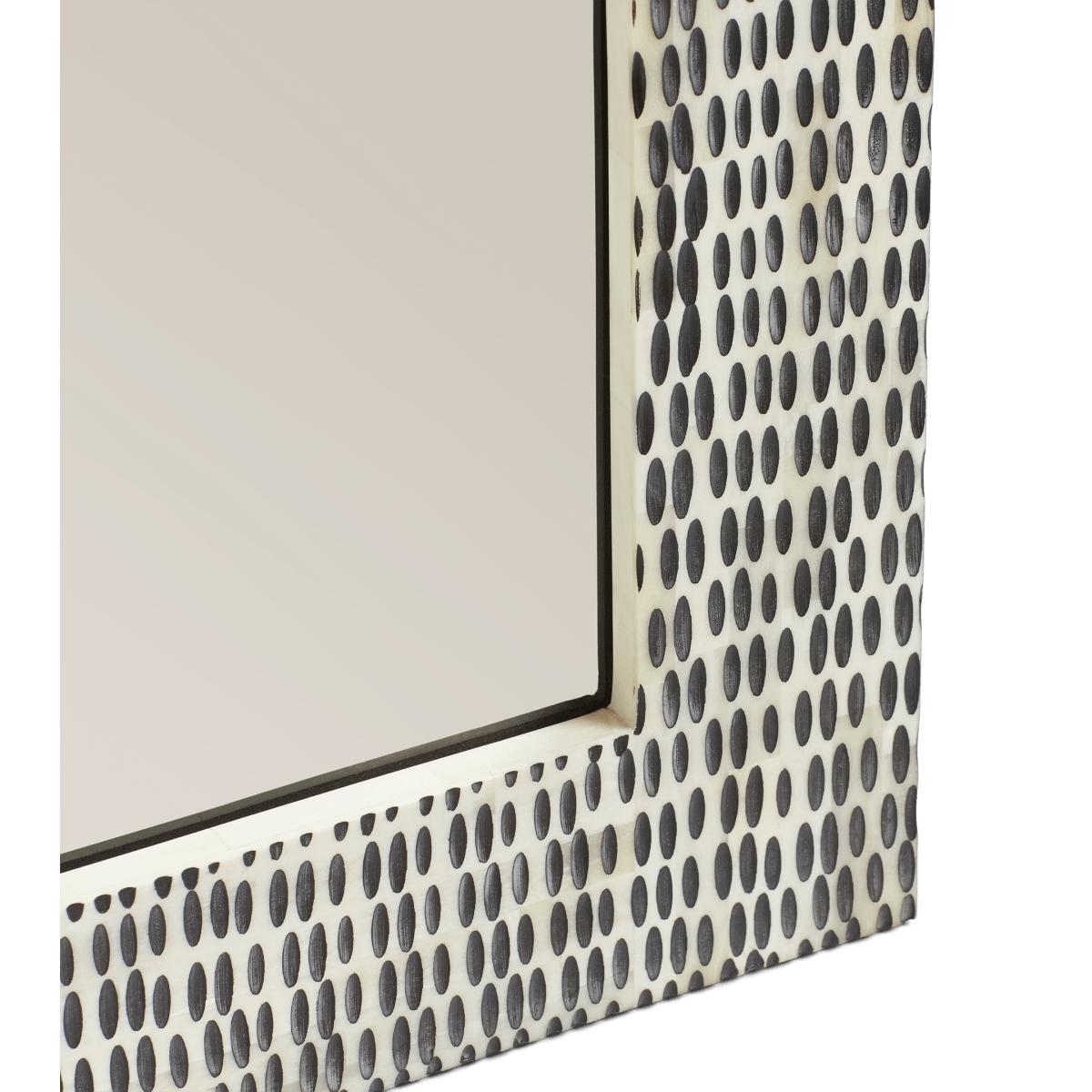 The hand-carved bone that decorates our Estella Range gives each piece a striking, speckled appearance. Every indentation on the ivory-coloured frame of this mirror is painted black by skilled craftspeople, lending the monochromatic piece eye-catching definition.
