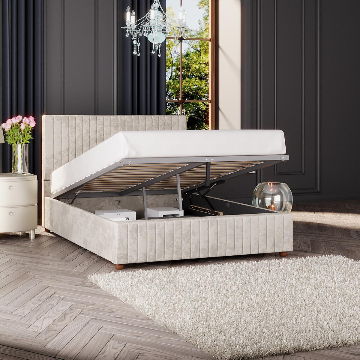 Please note: this product cannot be delivered to all Offshore Islands, Northern Island or Republic of Ireland. This product is Made to order in the UK. This item will be delivered to your doorstep. Introducing the Estella Ottoman bed by Laurence Llewelyn Bowen. Available in a range of the latest Velvet fabrics. The Estella features Vertical scoring on the headboard and footboard, constructed with deep foam padding perfect for sitting up in bed and reading. The Estella is lovingly handcrafted in the UK and features chunky upholstered panels, which means it is built to last. Quality sprung slats improve comfort and mattress lifespan. The easy lift ottoman mechanism is supported with quality gas pistons, enabling the storage to be accessed with minimal effort. Once the ottoman is elevated it will hold position, allowing hands free access to storage. The fabric base attaches to the underside of the bed, protecting your stored items. The Estella offers the perfect storage solution for rooms with no or little space and guarantees to become the focal point of any bedroom. Each ottoman is finished with hardwood feet which have been hand turned and varnished. Every ottoman bed in this collection is hand upholstered by skilled craftsmen, meaning that quality is assured. UK mainland delivery only. Swatch service: We offer a FREE swatch service. Please email samples@aspire-furniture.co.uk and include the below information:Please include 'La Redoute' in the title of your email. Name and address:. Product: Estella Ottoman Bed. Fabric: Velvet. Colour: (in order to receive the correct colour please use the table below to identify correct reference)Your swatches will be delivered within 10 working days (subject to availability) Colour Description - Colour to Request Blush Pink - Blush Berry - Berry Ochre - Ochre Navy - Navy Emerald - Emerald Duck Egg Blue - Duck Egg Silver Coloured - Silver Black - Black Pearl Grey - Pearl. Product Dimensions: Single: 112cmx100cmx209cm. Small Double: 112cmx130cmx209cm. Double: 112cmx147cmx209cmKing:112cmx160cmx219cmSuperking:112cmx190cmx219cm. Please remember to measure your available space before ordering. Packaged Dimensions: Single: Parcel 1:140cmx 113cmx 11.5cm Weight: 12kg Parcel 2:211.5cmx 31.5cmx 19cm Weight: 13kg Parcel 3:180cmx 24cmx 12cm Weight: 18kg. Small Double: Parcel 1:140cmx 113cmx 11.5cm Weight: 19kg Parcel 2:211.5cmx 31.5cmx 19cm Weight: 17kg Parcel 3:180cmx 24cmx 12cm Weight: 22kg. Double: Parcel 1:170.5cmx113cmx 11.5cm Weight: 22kg Parcel 2:211.5cmx 31.5cmx 19cm Weight: 18kg Parcel 3:180cmx 24cmx 12cm Weight: 23kg. King: Parcel 1:170.5cmx 113cmx 11.5cm Weight: 27kg Parcel 2:211.5cmx 31.5cmx 19cm Weight: 25kg Parcel 3:180cmx 24cmx 12cm Weight: 25kgSuperking:. Parcel 1:200.5cmx 113cmx 11.5cm Weight: 30kg Parcel 2:211.5cmx 31.5cmx 19cm Weight: 25kg Parcel 3:180cmx 24cmx 12cm Weight: 27kg. This product will be dispatched by one of our trusted suppliers. You’ll be contacted by their selected courier about your delivery.