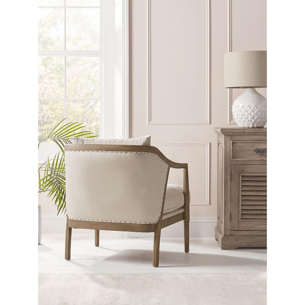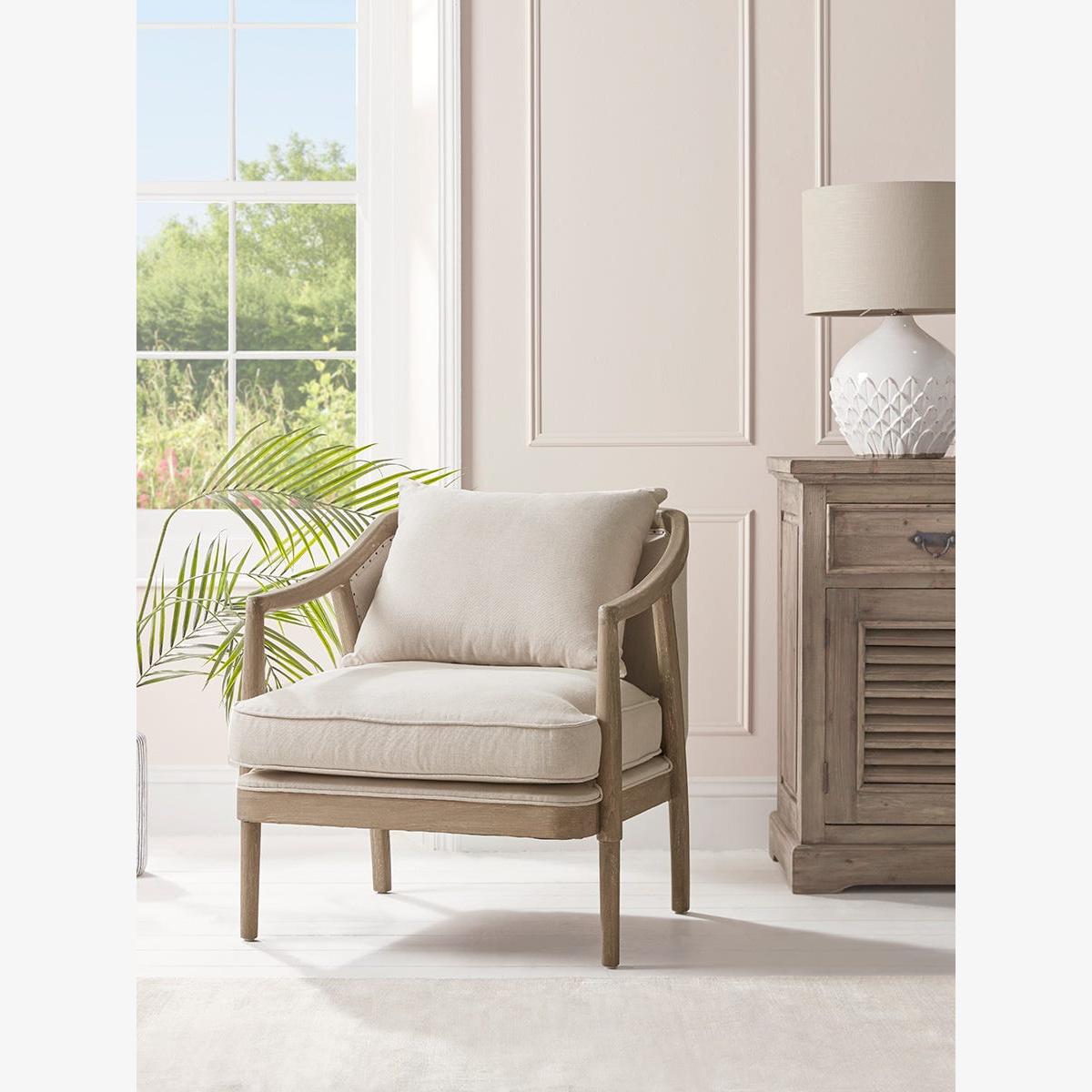 With gently curving lines in an oak frame, our Estelle Armchair has all the elegance of a heritage piece. Beautifully upholstered in natural linen, this is a chair that will look equally at home as part of a living room scene, or as an occasional chair in a hallway or bedroom. Plump cushions also make it the ideal seat for comfort loving readers.