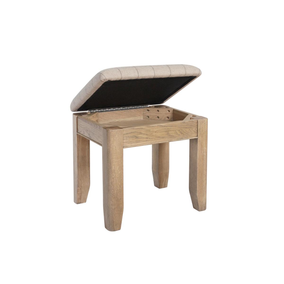 This is a small and robust stool to complement your existing bedroom furniture. It has an elegant, smoked oak design that gives it a warm, classic look. A solid wood frame that makes it durable and stable. Cushioned flip-up seat for extra comfort. Radiant smoked oak finish that gives it a vintage look. Storage area under the seat pad. Sturdy solid wood tapered legs.