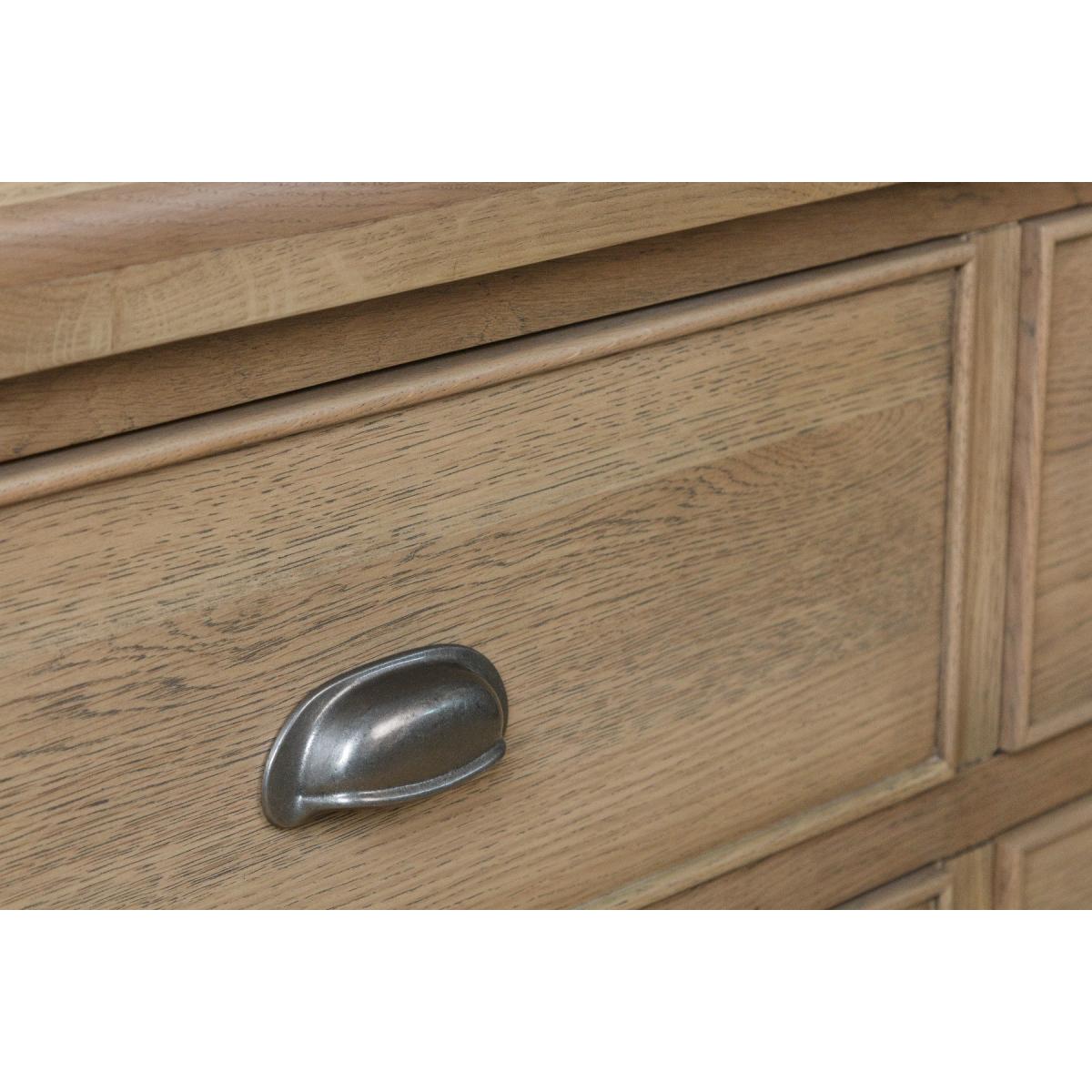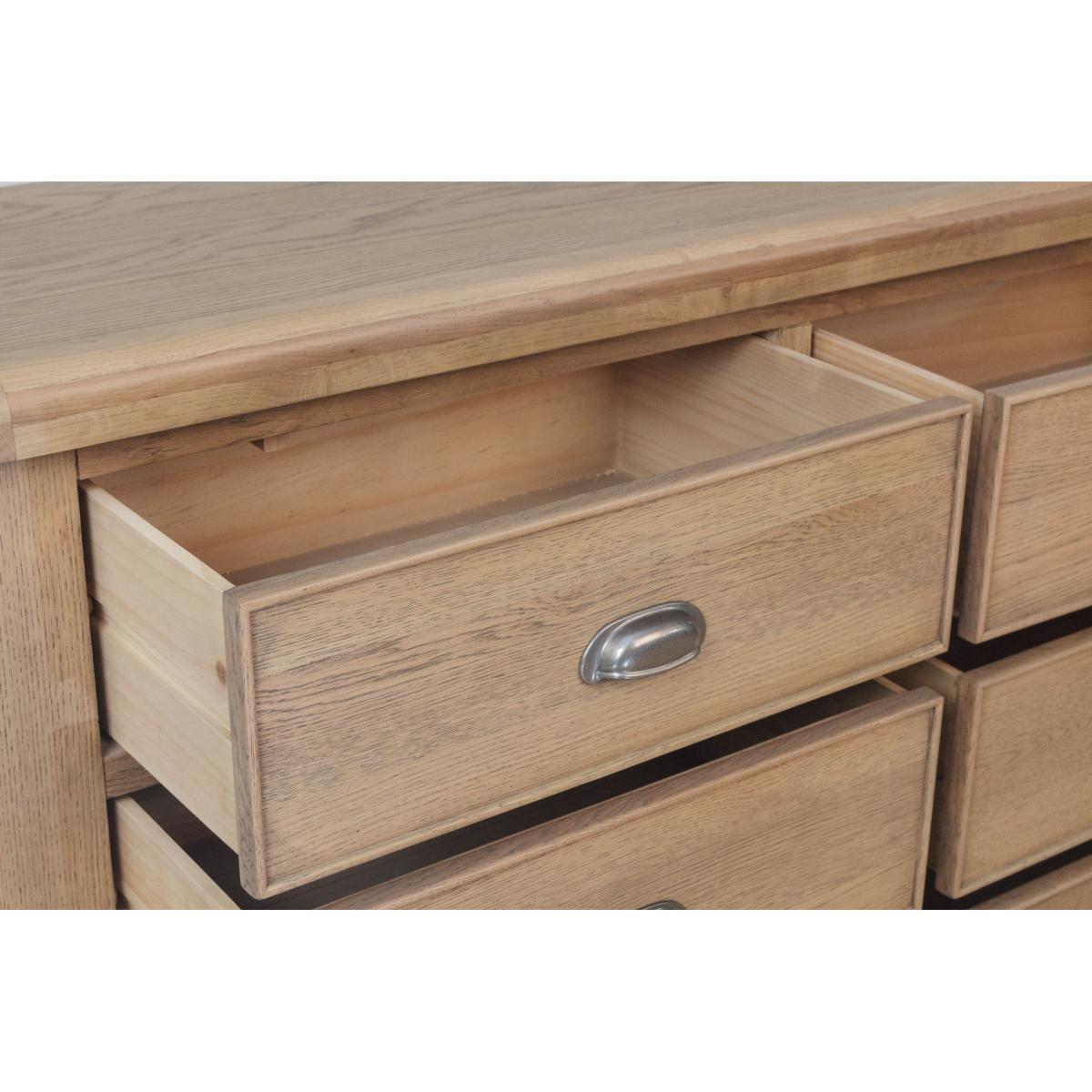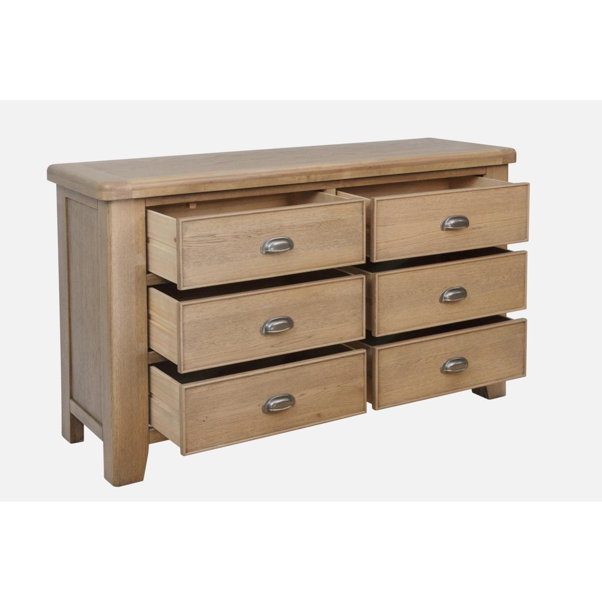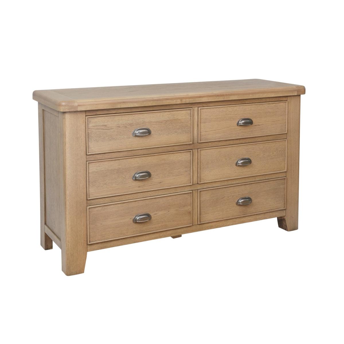 This chest of drawers has an elegant and minimalist design to suit any bedroom. It features a clean, smoked oak finish with a strong and sturdy frame. A sturdy, solid wood frame that guarantees years of use. Strong and chunky, solid oak top that provides room to place potted plants, picture frames, clocks, and other bedroom decorations. 3 handy deep dovetailed drawers with 2 smaller drawers above them. These drawers have antique cup handles that give the chest a vintage, traditional look. Solid wood tapered legs. Comes ready assembled.