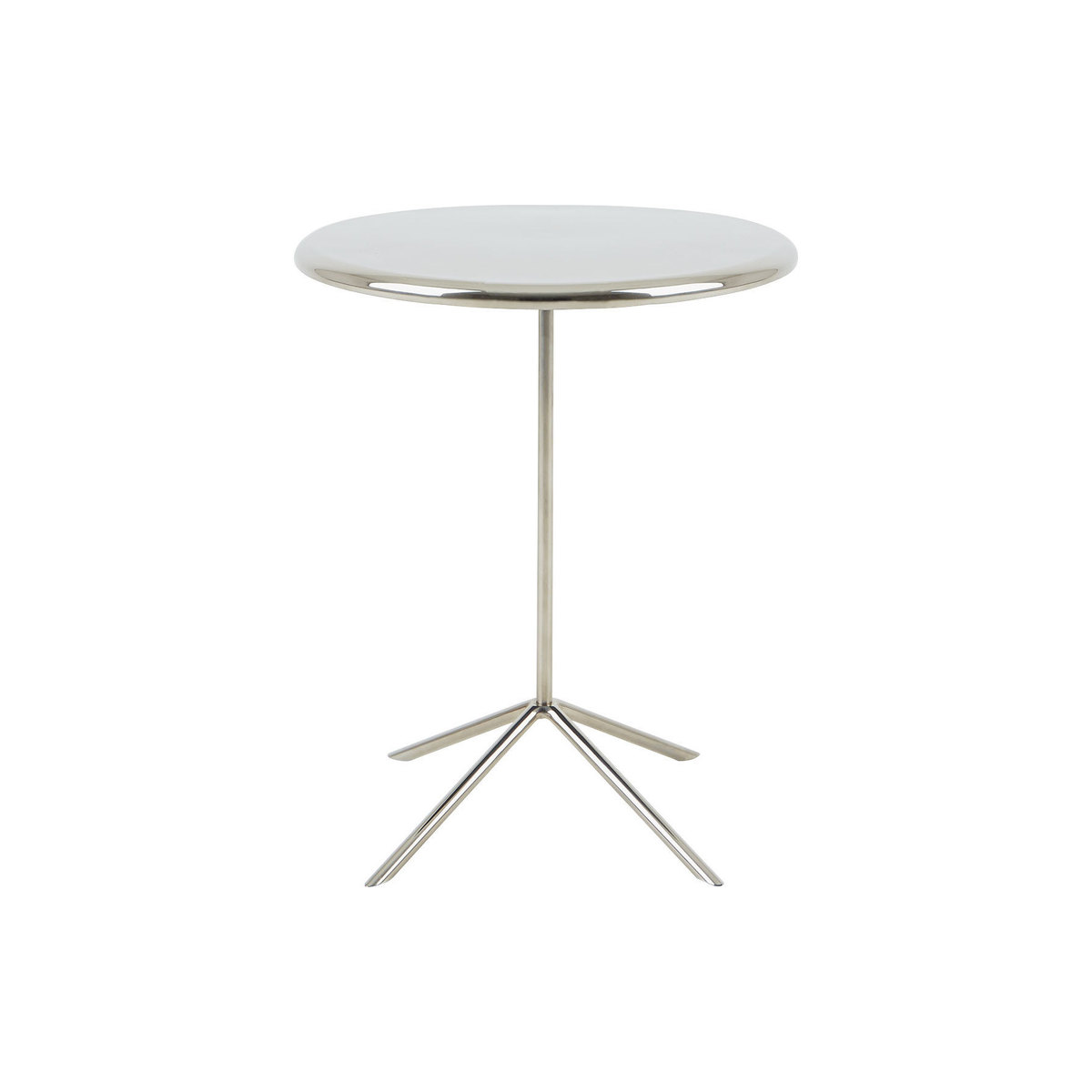 Handmade in India, the Estelle silver round side table is an elegant, airy design in stainless steel with a polished finish. Exclusive to Habitat, the lightweight table makes a glamorous addition to a bedroom and provides a strong visual contrast to upholstery in the living room.