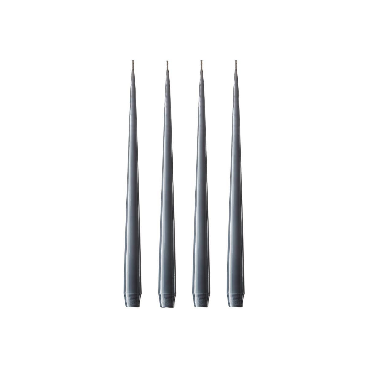 Black candles from the Danish brand Estrik & Erik. The candles are suitable when you want to give your neutral table setting a more dramatic look with the help of darker details. The candles are hand-dipped with an elegant tapered shape at the top. The bottom is cone-shaped to fit most candlesticks - tall or short. Available with matte or lacquered finish.