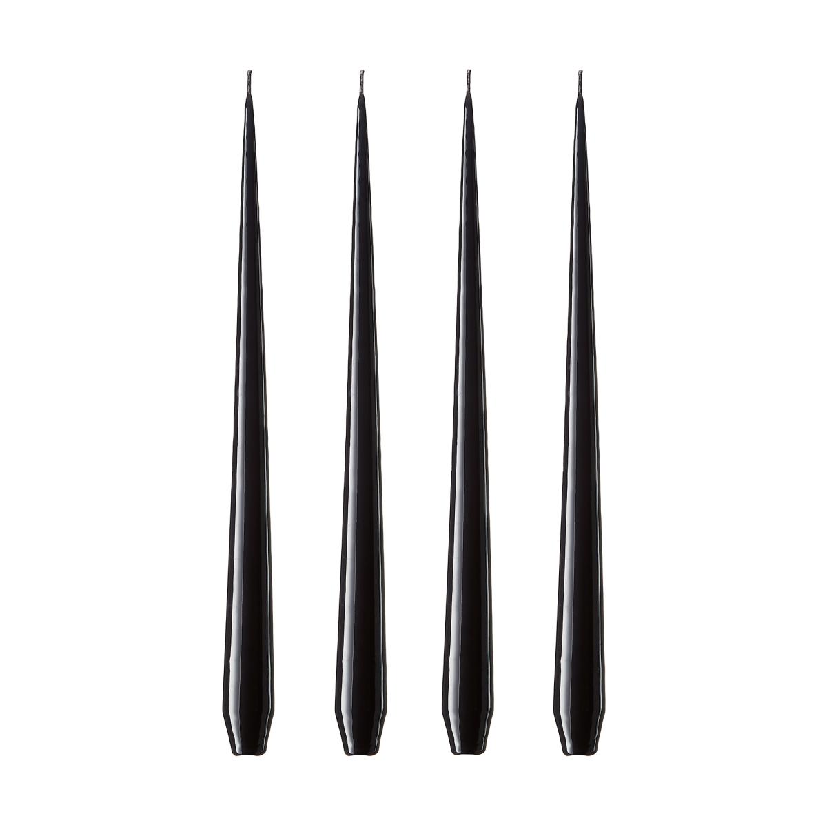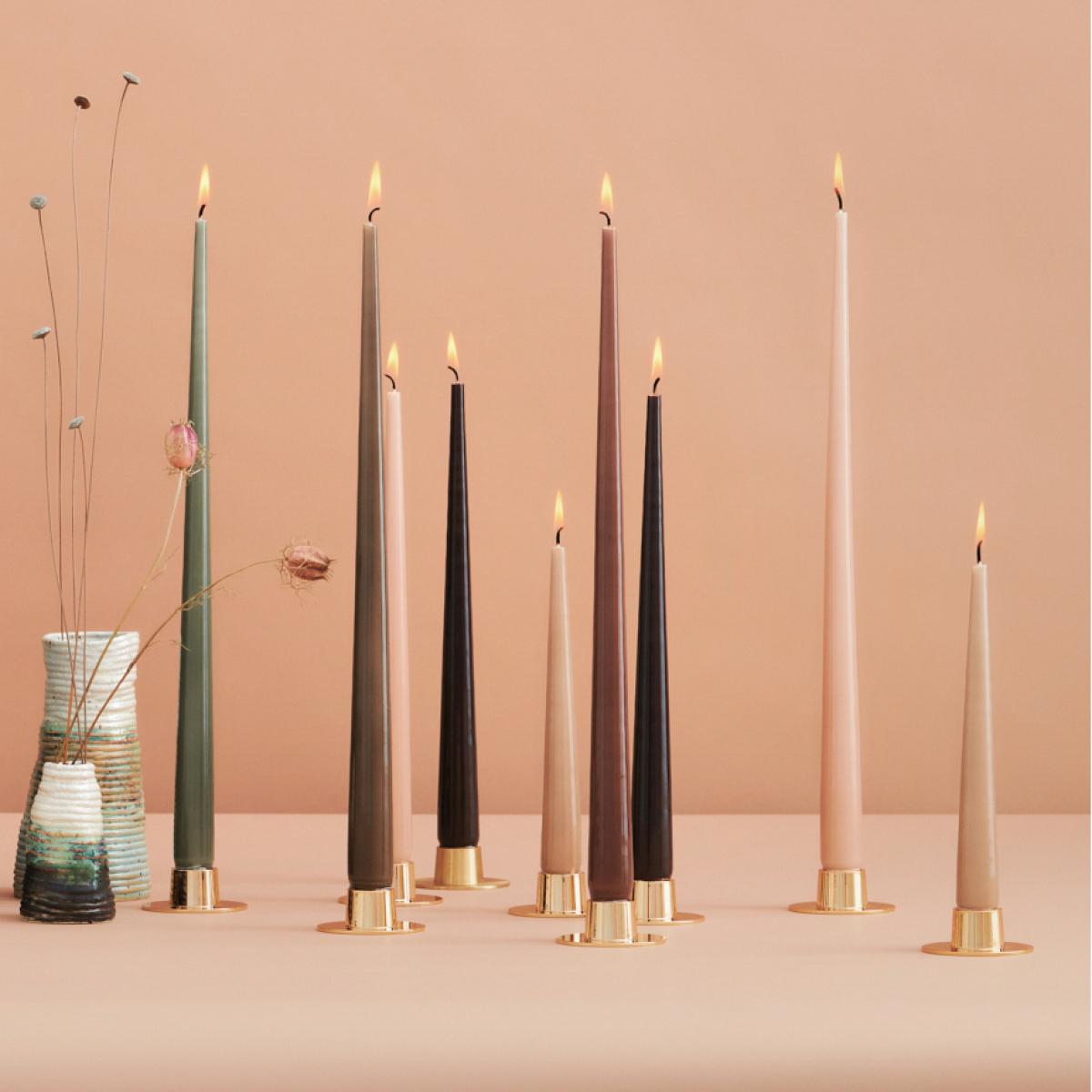 Black candles from the Danish brand Estrik & Erik. The candles are suitable when you want to give your neutral table setting a more dramatic look with the help of darker details. The candles are hand-dipped with an elegant tapered shape at the top. The bottom is cone-shaped to fit most candlesticks - tall or short. Available with matte or lacquered finish.