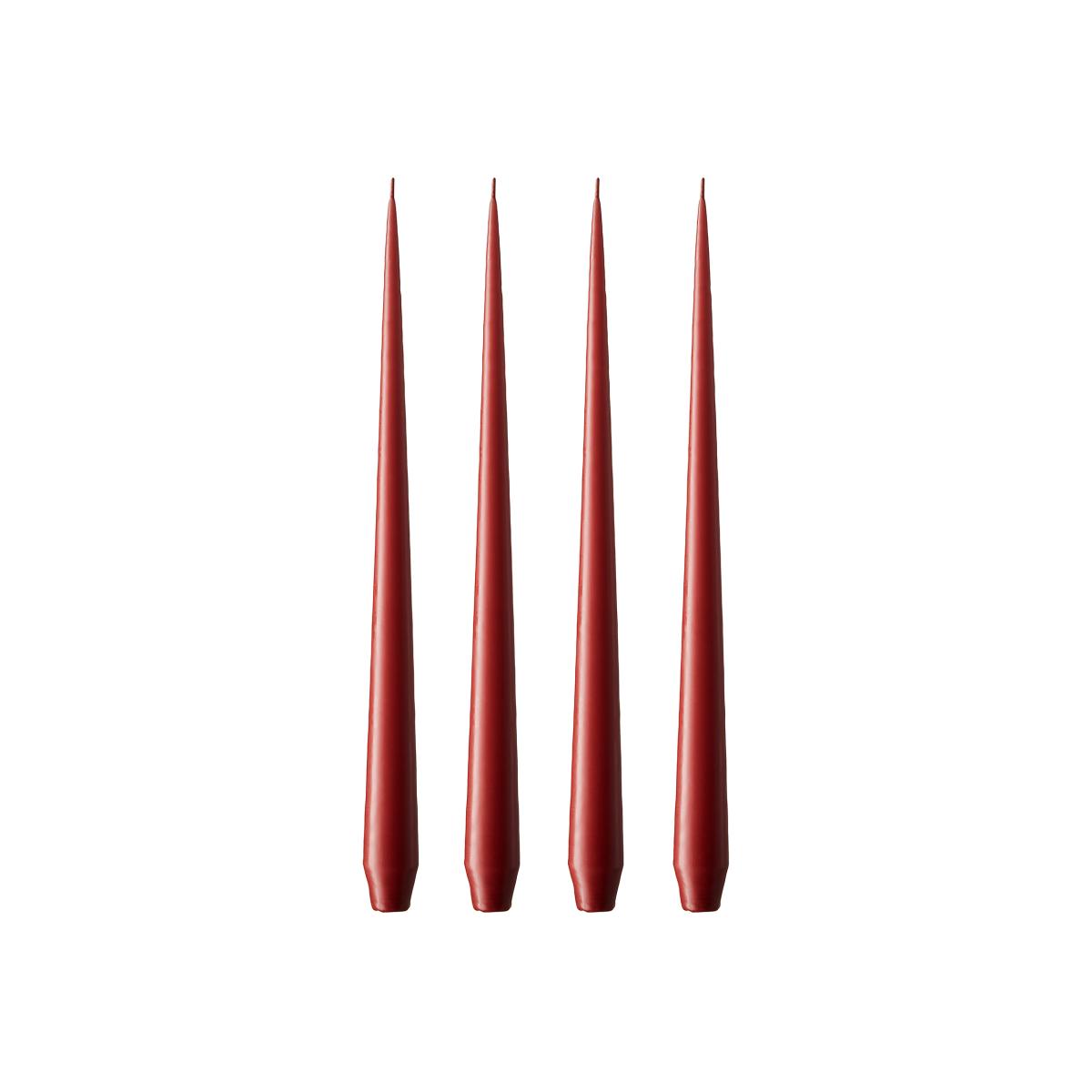 Burgundy candles from the Danish brand Estrik & Erik are a lovely set of understated and subtle candles with rich colours. The candles are hand-dipped, with an elegant tapered form at the top. The bottom is cone-shaped to fit most candlesticks. Suitable for both short and tall candlesticks. Available with a matte or lacquered surface.
