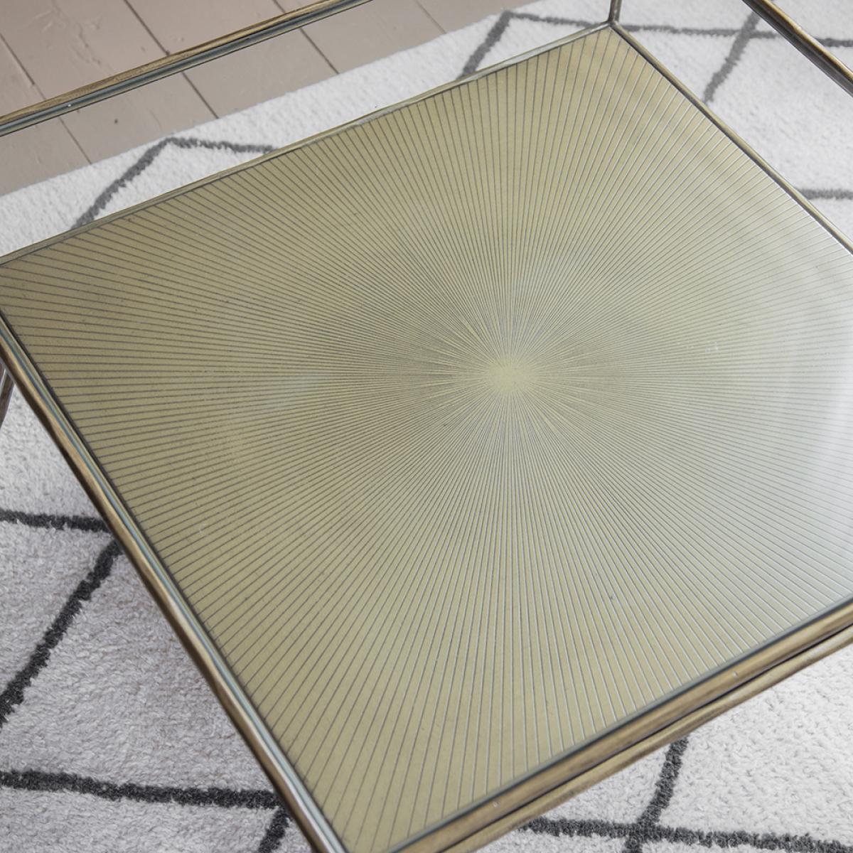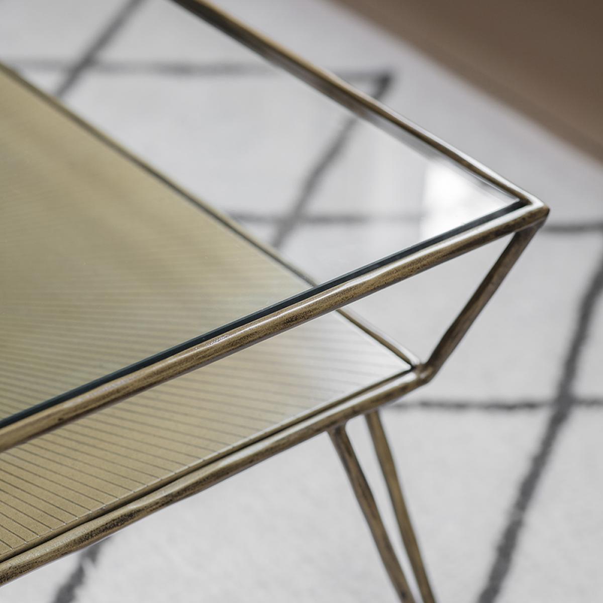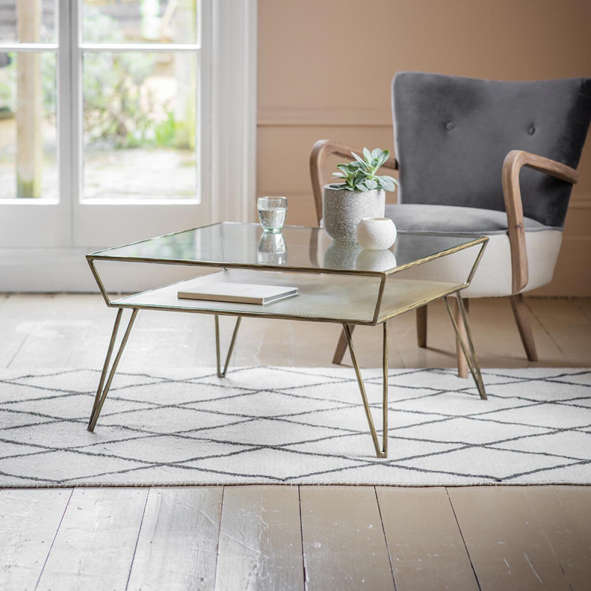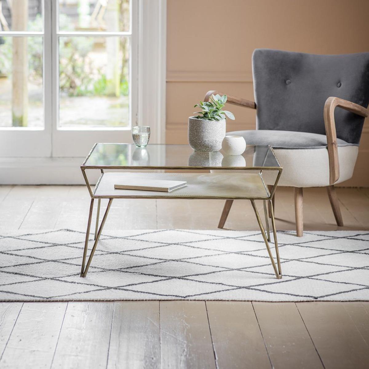 Our Etched Coffee Table with storage shelf is sleek and contemporary, with a subtle iron frame, and slimline design. This rectangular glass tabletop coffee table is classic and practical, revealing a gorgeous etched iron shelf below that looks stunning in its own right but is also a handy shelf for placing books, decorative boxes, or anything you want to display in pride of place. Ideal for a living room or seating area, this practical coffee table is a subtle design that will match with both contemporary and more traditional interiors. Its slimline design is space saving, and its delicate looking sturdy iron legs give the illusion of floor space, making it ideal for smaller rooms or homes.