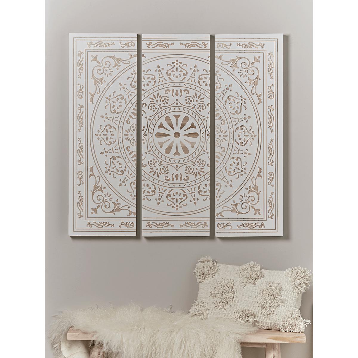 Inspired by the romanticism of faraway lands, and a travellers coastal retreat, our triptych panels have a refreshing tone, and will enliven any wall in the home. Each of our three panels complete a balanced decorative pattern, captured in relief and highlighted by a white wash surface - the perfect addition to a stylish, pared back home.