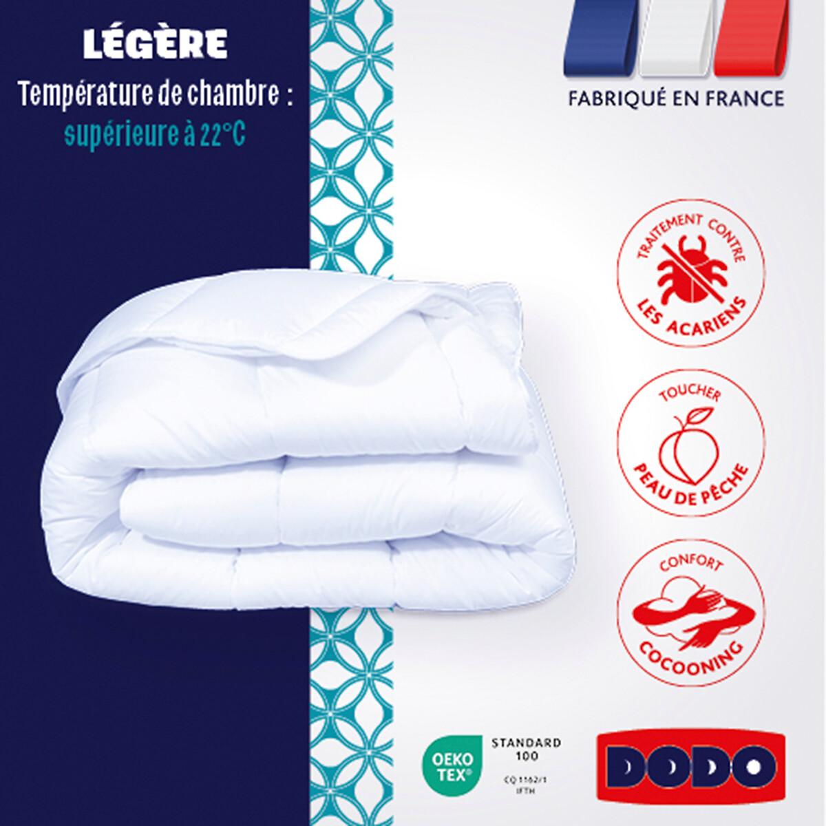 Excellent thermal insulation and an ultra soft downy feel : the Dodo Suprelle® Allerban 200 g / m² DODO duvet has received the approval of allergy specialists. A super soft duvet with an immaculate finish. Product Details • 100% polyester Suprelle® Allerban filling (silicone hollow fibres) • Anti-mite treatment • Straight stitching • Plain white taped edging, strengthened with double stitching • Cover 100% microfibre 100% polyester • Care instructions: Machine washable at 40°CDelivered in its own case. Ideal for bedroom temperatures of 22°C and above. Treated with active biocide treatment. The active substance is 3- (trimethoxylsilyl) Quaternary Ammonium Chloride.