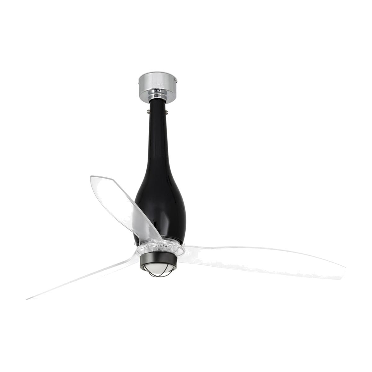 ETERFAN is a ceiling fan with light with an industrial and modern style. This ceiling fan is ideal for the ventilation of areas ranging from 13m2 to 17'6m2 and has a low-consumption DC motor. This shiny black fan with transparent blades comes with a reverse function summer-winter, so you can also use it in winter, improving the efficiency of your heating system. Activated by remote control included. Cool the air when it is warm and move the air for better heat dispersion when it's cold with the contemporary Eterfan LED Shiny Black and Transparent Ceiling Fan. It has a low-consumption DC motor, reverse function, and a sleek style to keep you comfortable no matter the weather.
