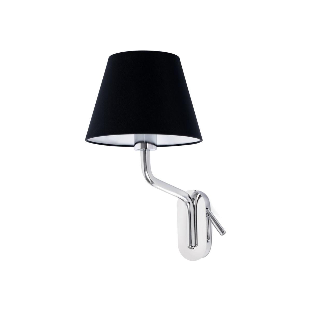 Beautifully designed the Eterna Chrome and Black Shade Wall Lamp with Right Reading Light is a stylish choice for use next to a bed or sofa. Aim the reading light where you need it thanks to the adjustable head and enjoy the look of this contemporary fixture in any setting.