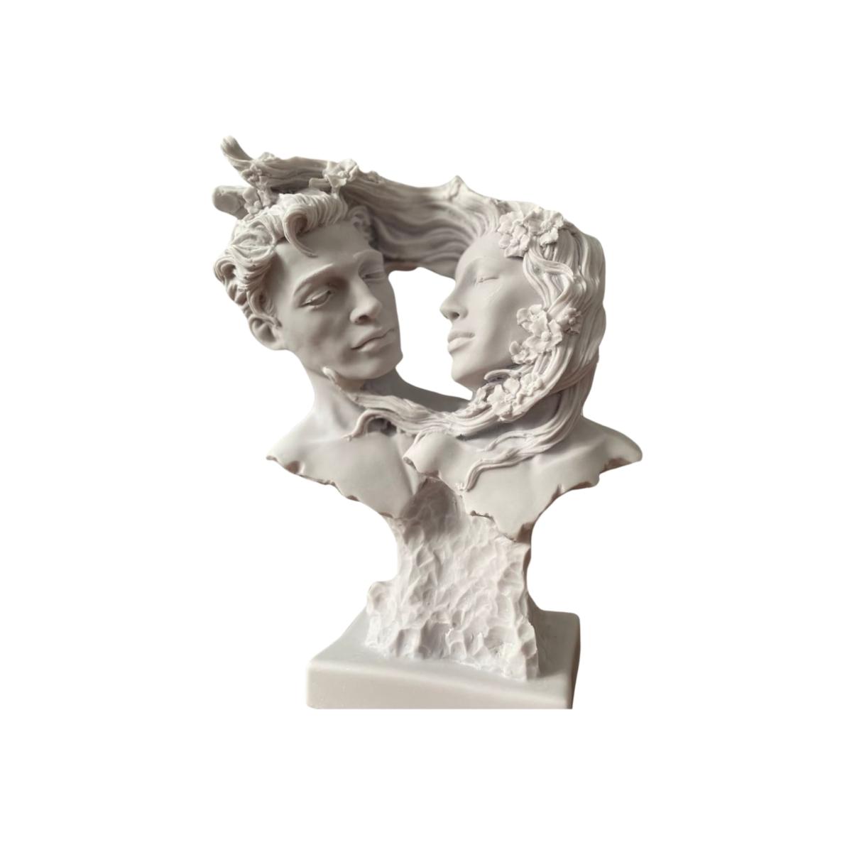 Eternal Harmony is a beautifully crafted sculpture measuring 31 x 22 cm that captures the essence of love and unity. This piece features two intertwined figures, their faces delicately carved to express a deep, emotional connection. The flowing hair and soft expressions create a sense of movement and harmony, symbolizing the timeless bond between the two souls. Perfect for adding a touch of romance and elegance to any space, Eternal Harmony serves as a beautiful reminder of the enduring power of love. Gently dust your sculpture with a soft, dry cloth or a feather duster.
