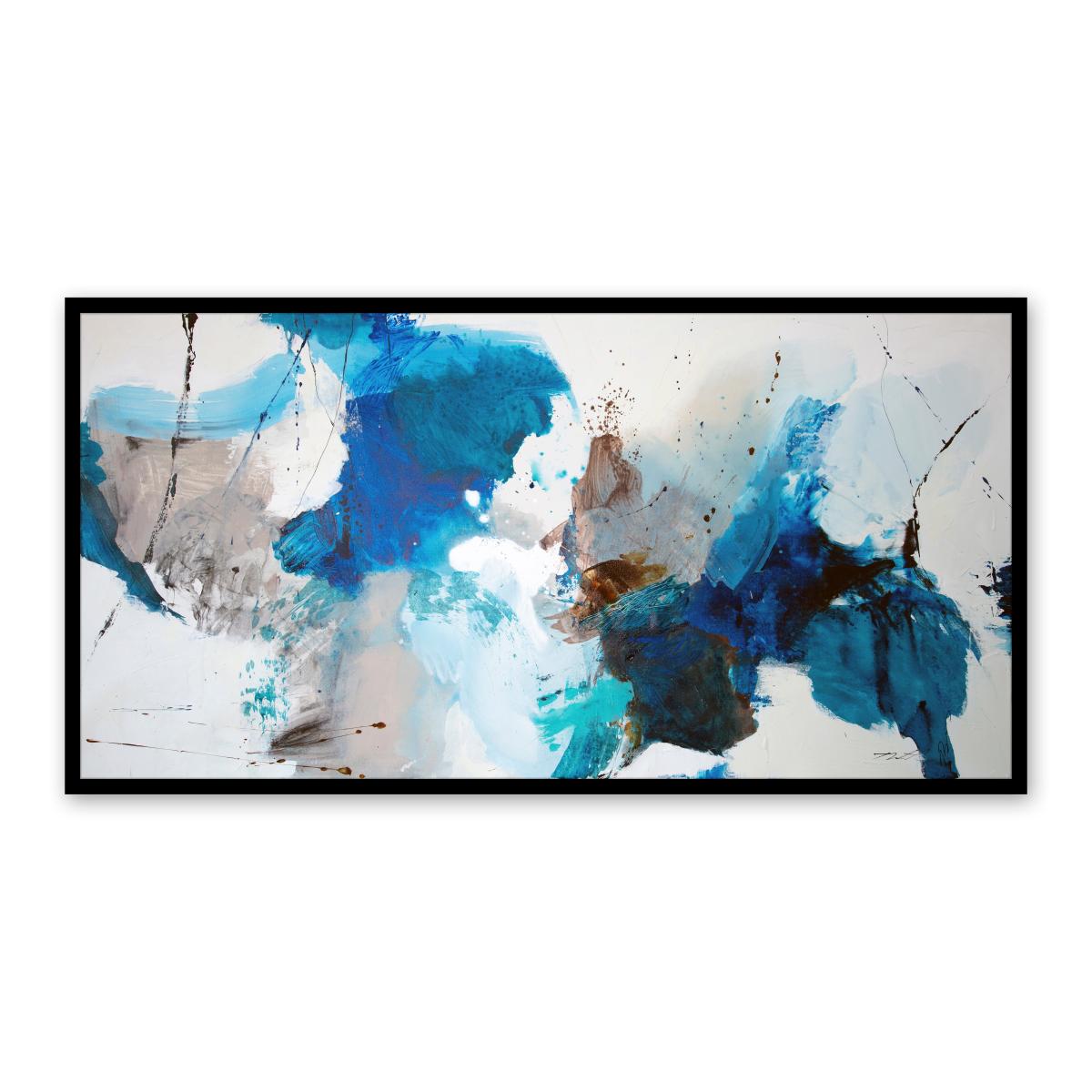 I love this piece because of its bold use of blue tones and abstract design, which can bring a sense of calm and depth to any space. It works particularly well in contemporary or modern interiors, especially those with neutral or grey colour schemes, as it adds a splash of colour and visual interest. For styling, I’d suggest pairing it with other blue or metallic accents to create a cohesive look. It’s also versatile enough to be the focal point above a dining table or in a living room on a feature wall. To keep it looking fresh, consider framing it with minimalist surrounds to enhance its clean lines, and don’t be afraid to mix with textured or patterned accessories to add layers of visual appeal.