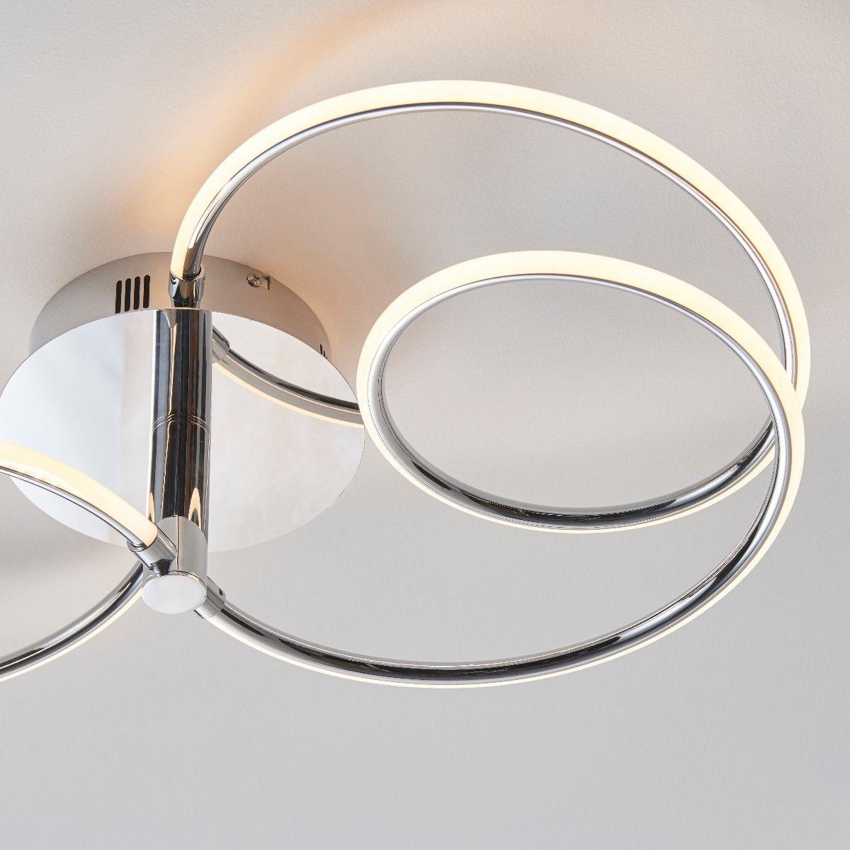 Contemporary LED design semi flush ceiling light. A unique contemporary ceiling light exclusive to Pagazzi, with a duo of flowing illuminated curves creating an amazing designer look. Chrome plated finish with white diffuser and integrated LED. Place in any lounge, dining room or bedroom as an eye-catching centrepiece.