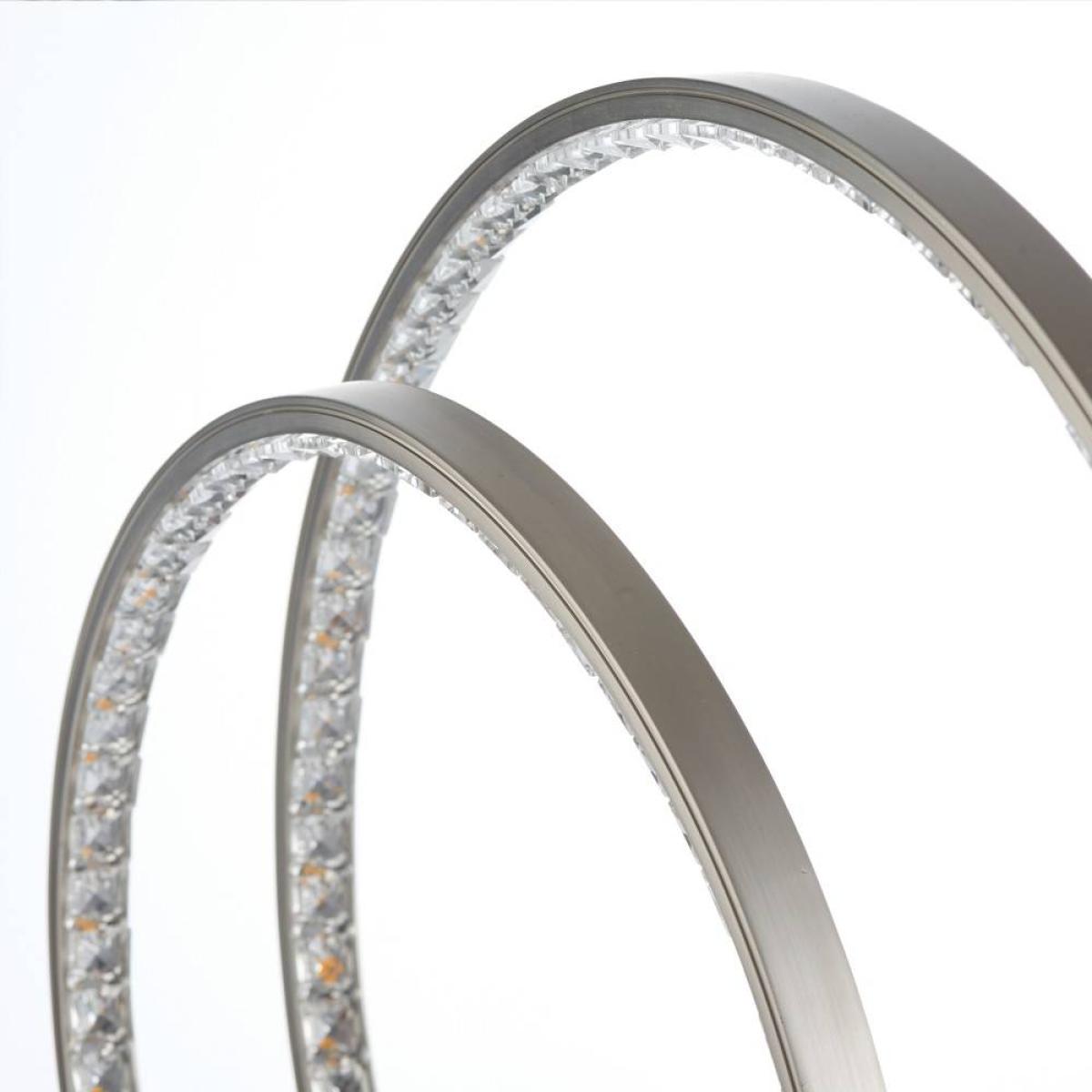 Contemporary touch LED ceiling pendant with a striking continuous loop of LED lights diffused through K5 crystals. Perfect for modern interiors and plated in a sophisticated matt nickel finish. Select 3 different light levels by touching an simple integrated chrome plated switch located on the base. Contemporary touch LED ceiling pendant with a striking continuous loop of LED lights diffused through K5 crystals. Perfect for modern interiors and plated in a sophisticated matt nickel finish. Select 3 different light levels by touching an simple integrated chrome plated switch located on the base.