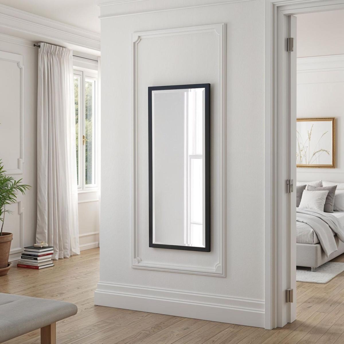 A timeless, sophisticated black framed bevelled mirror. The mirror is made using real mirror glass finished with a bevelled edge, adding depth and luxury to the overall look. The mirror has high reflective qualities with it's crystal clear reflection. The frame is constructed from wood giving the mirror strength and durability. Hanging hooks come attached to the back of the wall mirror to enable portrait or landscape hanging. The overall contemporary style of this mirror will lend itself to most interior styles making it a timeless selection. Hand made in the UK by skilled artisans.