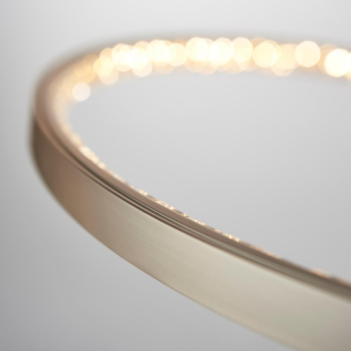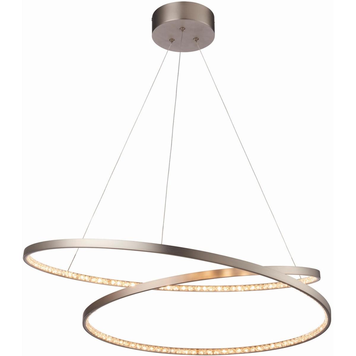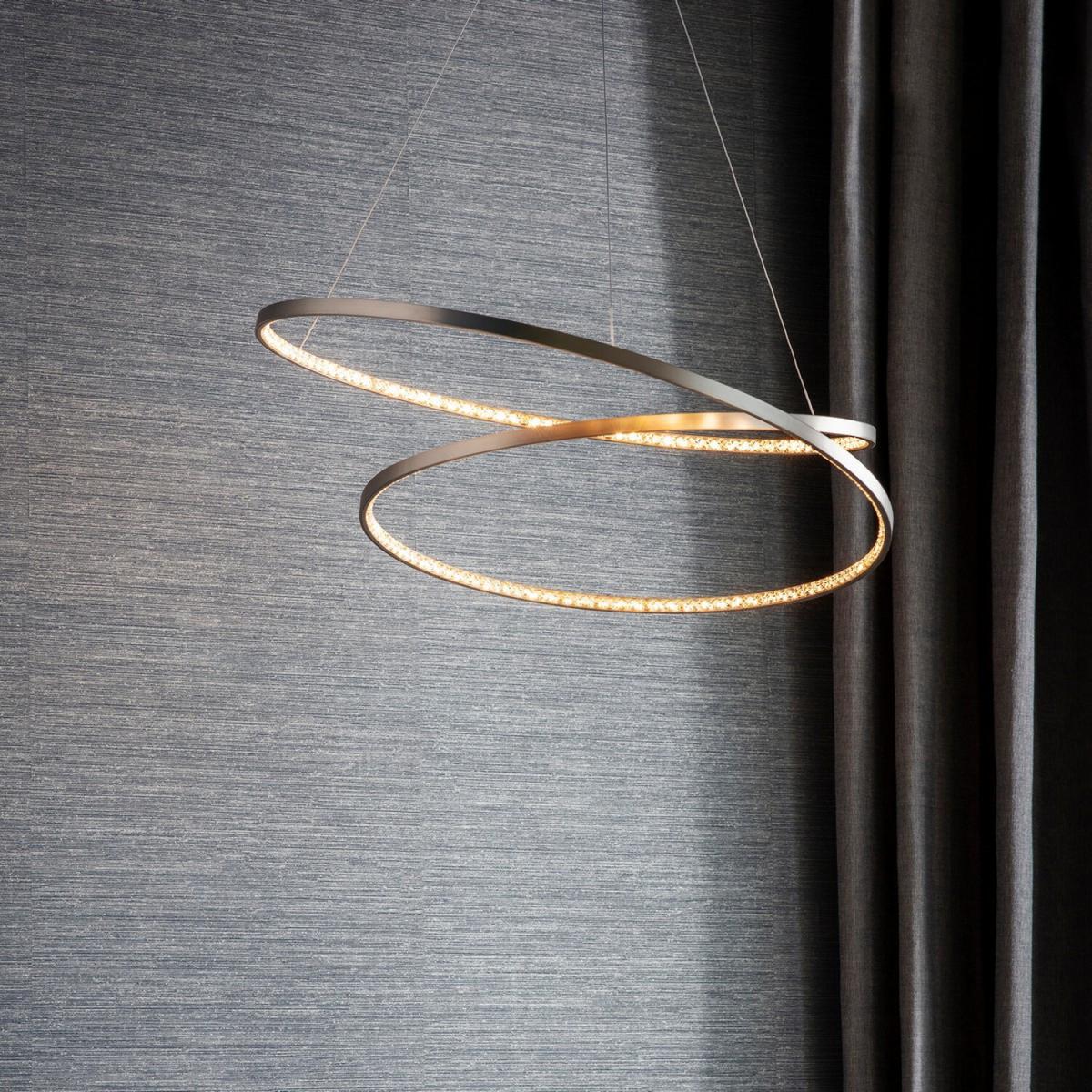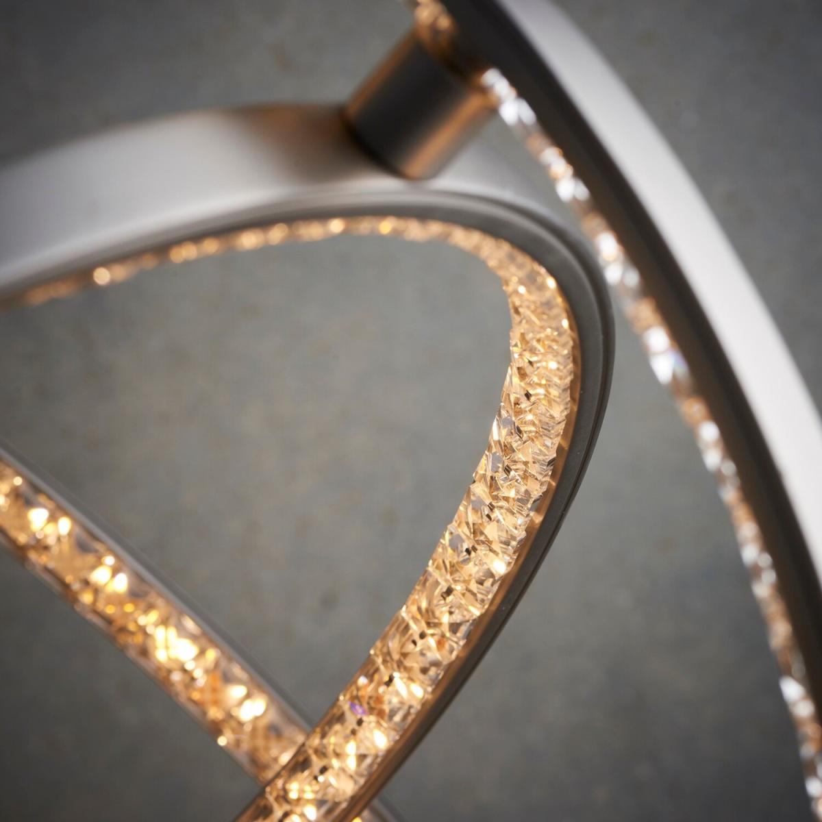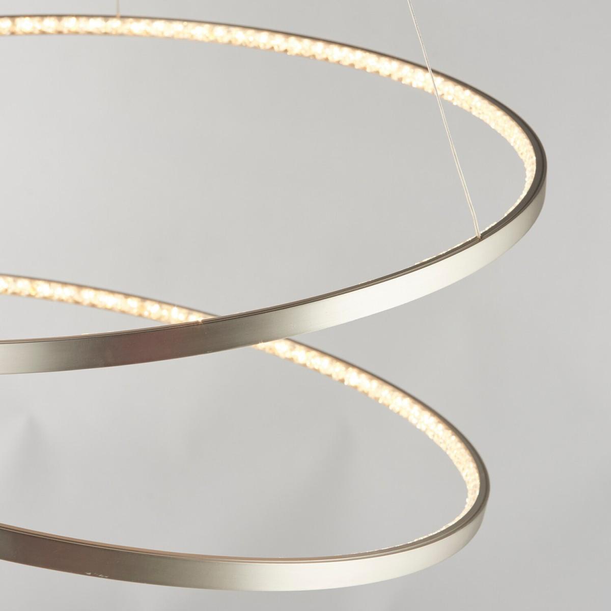 Contemporary LED ceiling pendant with three hoops of LED lights diffused through K5 crystals. Perfect for modern interiors and plated in a sophisticated matt nickel finish. The impressive loop design is an amazing centrepiece to any interior, creating an striking light effect.