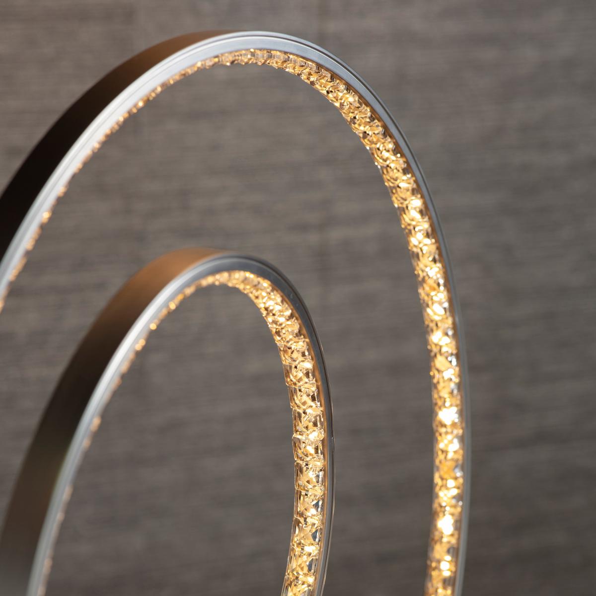 Contemporary LED ceiling pendant with a striking continuous loop of LED lights diffused through K5 crystals. Perfect for modern interiors and plated in a sophisticated matt nickel finish. Select 3 different light levels by touching an simple integrated chrome plated switch located on the base.
