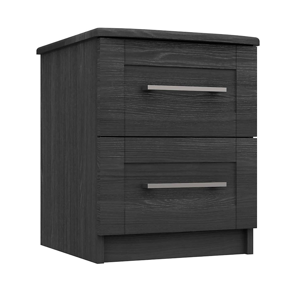* MDF construction* Grain effect finish* Metal handles* Made in the UK With Ethan by your bedside, you can’t go wrong! This contemporary design is sure to suit most homes. Make stowing your night-time essentials away easy with the two spacious drawers that offer plenty of space for anything you want to keep close by. There’s room for a lamp on the top surface and other decor to truly make this your own. Please note, this item cannot be delivered to Jersey.